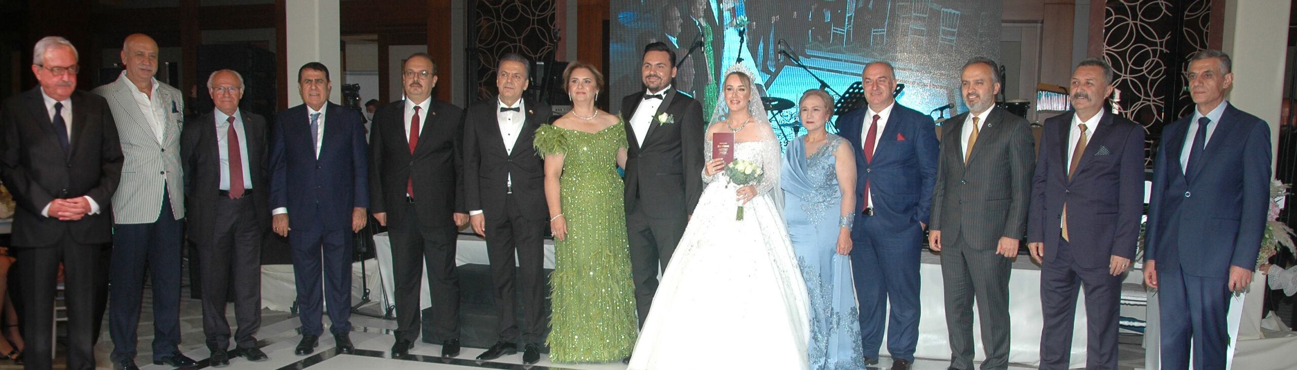 Shareton Otel’deki görkemli düğüne iş, cemiyet ve siyasi yaşamının tanınımış isimleriyle Bursa protokolü büyük ilgi gösterdi.