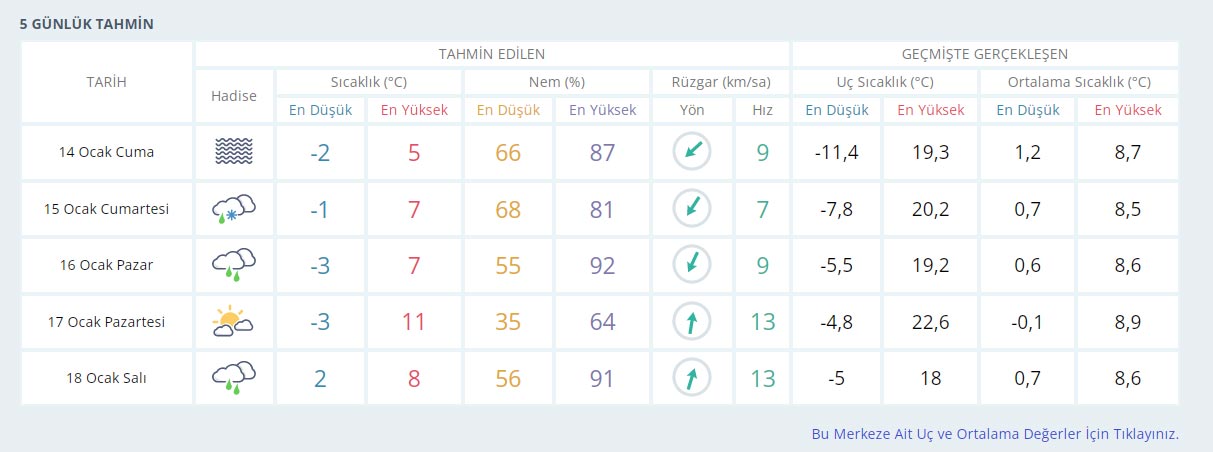 Salı günü ise kent genelinde yağmur bekleniyor. En yüksek sıcaklık 8 derece en düşük sıcaklık ise 2 derce olacağı tahmin ediliyor.