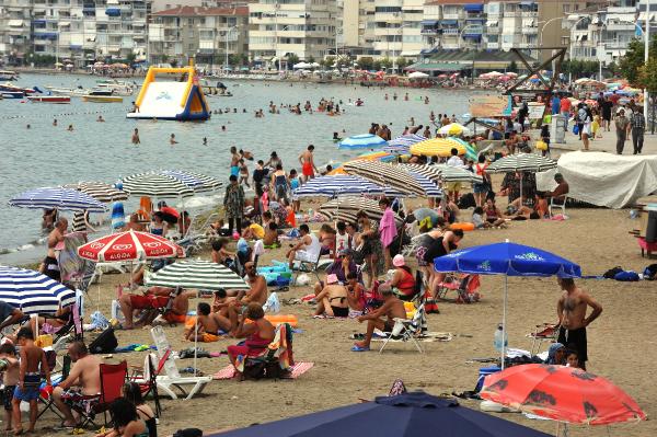 Termometrelerin 33 derece gösterdiği kentte, sıcaktan bunalan vatandaşlar, sahillere akın etti.