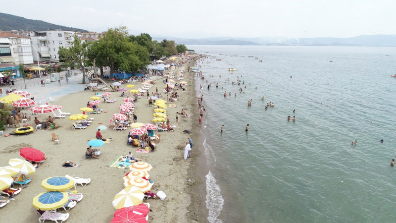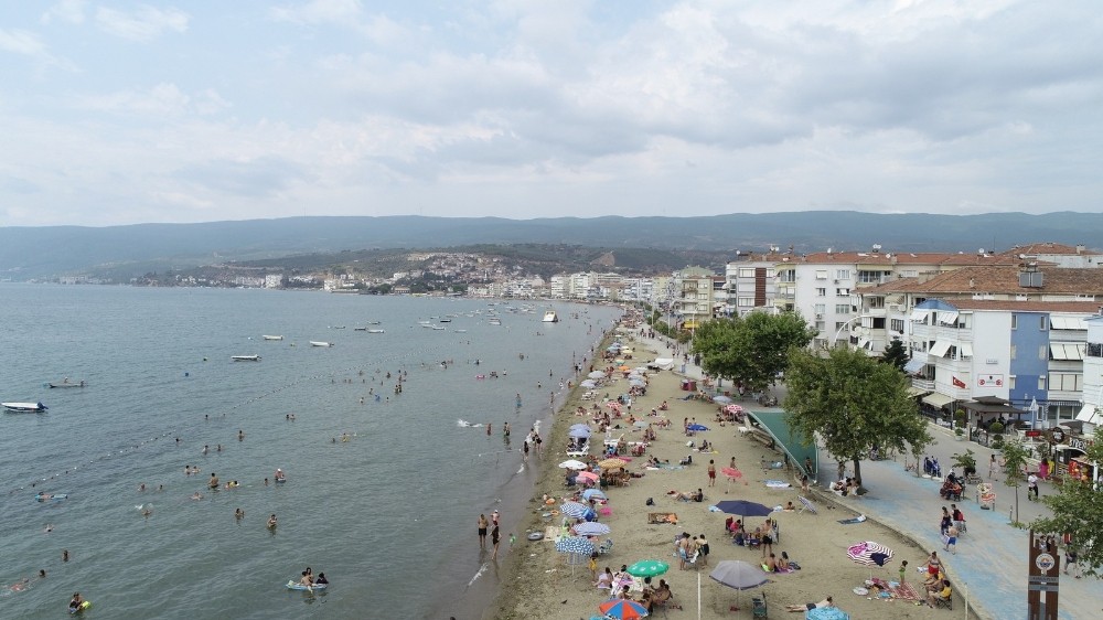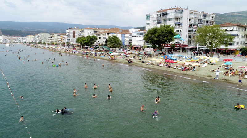 Gemlik ilçesindeki Kumla sahilinde vatandaşlar yoğunluk oluşturdu.