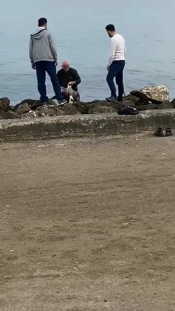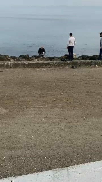 Martının su üzerinde hareketsiz şekilde çırpınmaya çalıştığını gören vatandaş, hiç tereddüt etmeden kıyafetleriyle birlikte denize girerek martıyı güvenli bir alana çıkardı.