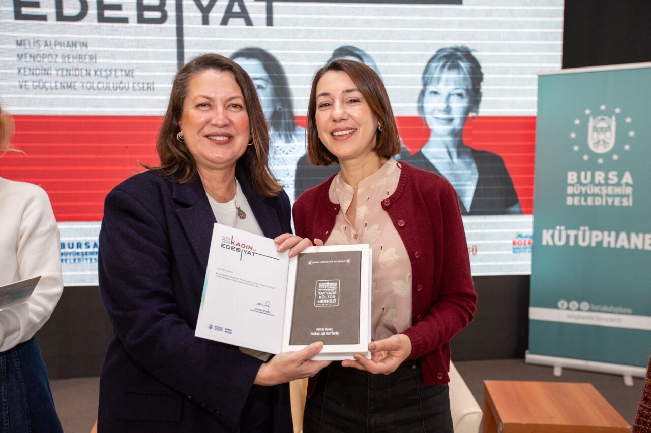 Bursa Büyükşehir Belediyesi Kültür ve Sosyal İşler Dairesi Başkanlığı tarafından düzenlenen ‘Kadın ve Edebiyat Söyleşileri’ programı, Atatürk Kültür Merkezi Merinos Yerleşkesi’nde gerçekleştirildi. Kitap tutkunlarının büyük ilgi gösterdiği söyleşi, Dr. Özge Sivrioğlu moderatörlüğünde yapıldı. Yazar Melis Alphan’ın ‘Menopoz Rehberi: Kendini Yeniden Keşfetme ve Güçlenme Yolculuğu’ adlı eseri odağında düzenlenen programda, kadınlar üzerinden edebiyat ve yaşam pratikleri çok yönlü bir şekilde ele alındı. Program kapsamında Nilgün Türksever Görgü tarafından eserden özel bir okuma da yapıldı.