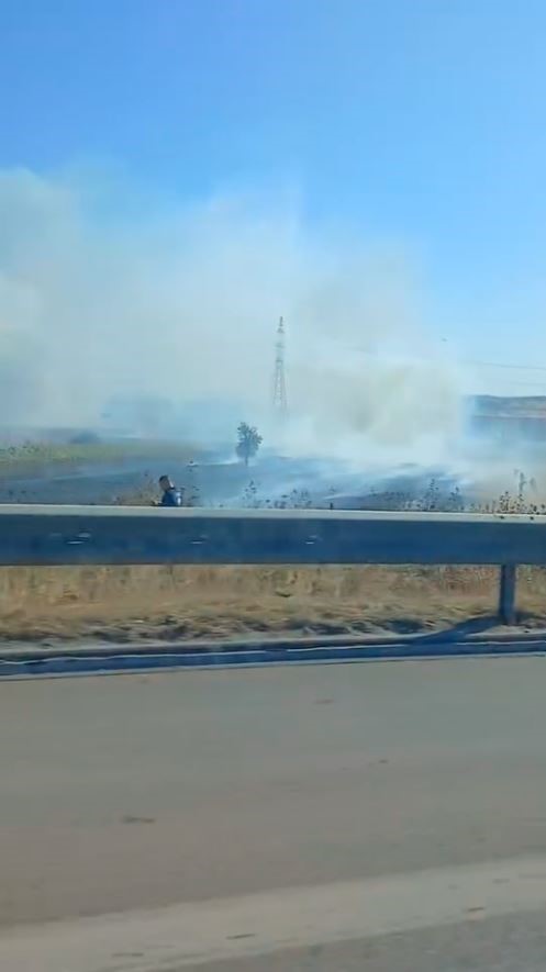 Bursa-İzmir-İstanbul otoyolu kenarındaki otluk alanda yangın başladı.