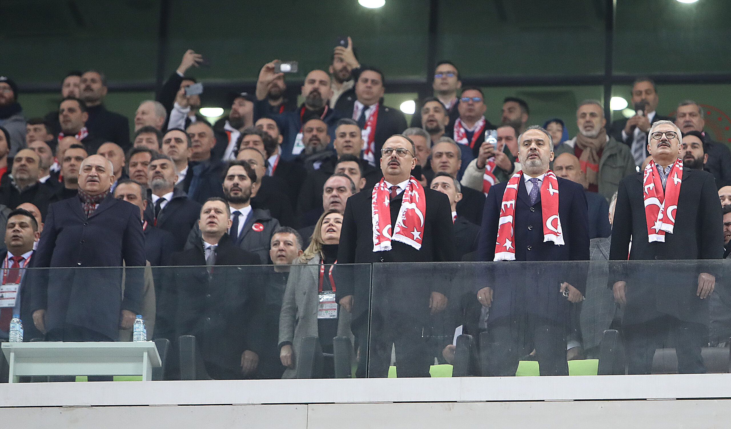 Bursa’daki dev karşılaşmayı TFF Başkanı Mehmet Büyükekşi, Bursa Valisi Yakup Canbolat, Bursa Büyükşehir Belediye Başkanı Alinur Aktaş ve Bursa Cumhuriyet Başsavcısı Ramazan Solmaz birlikte izledi…