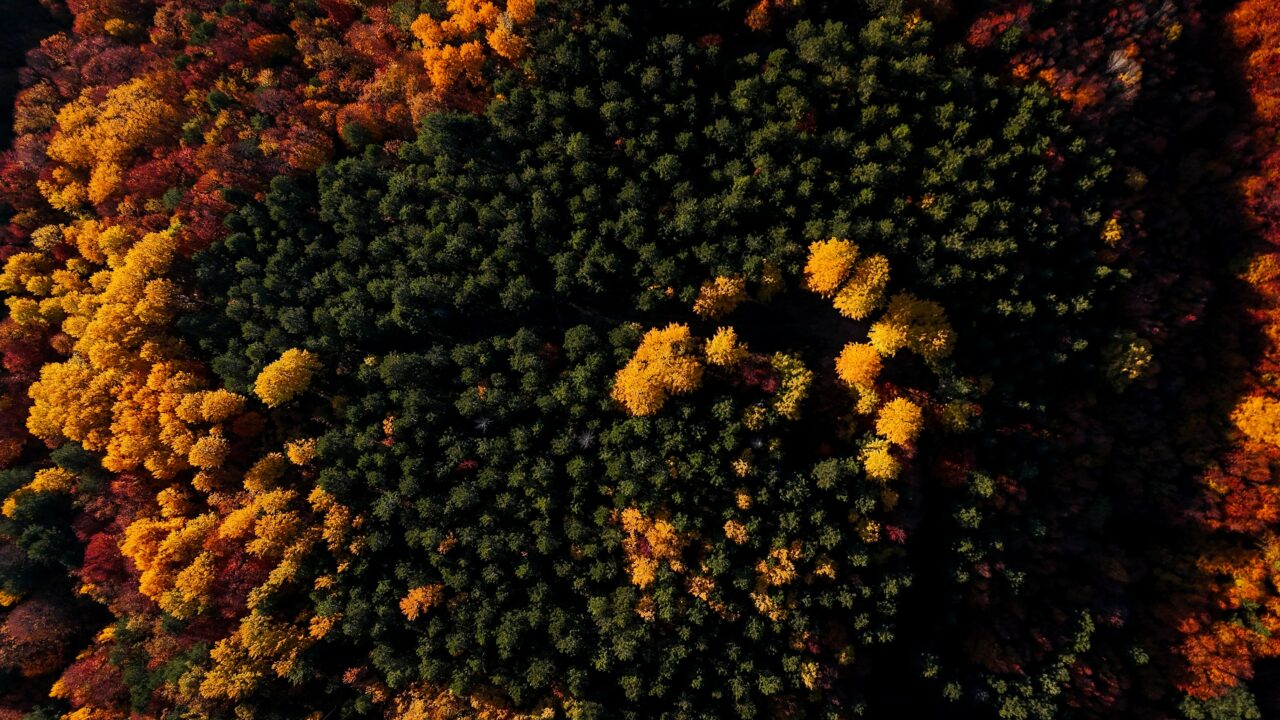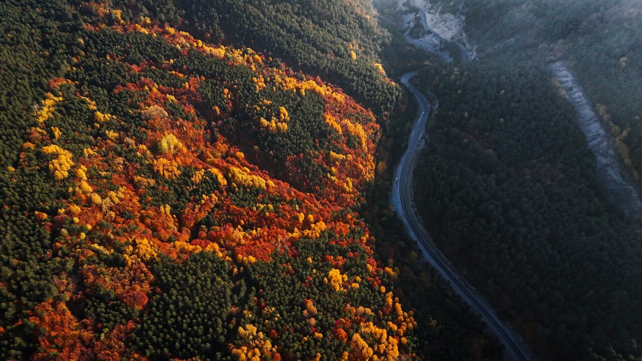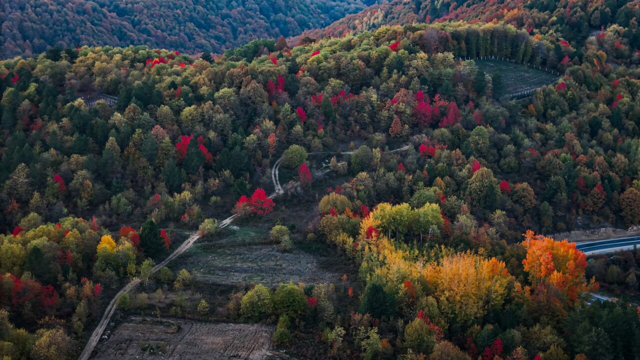 Kayın, meşe ve çam ağaçlarının yoğun olduğu Domaniç Dağları’nda rengarenk sonbahar, drone ile görüntülendi.