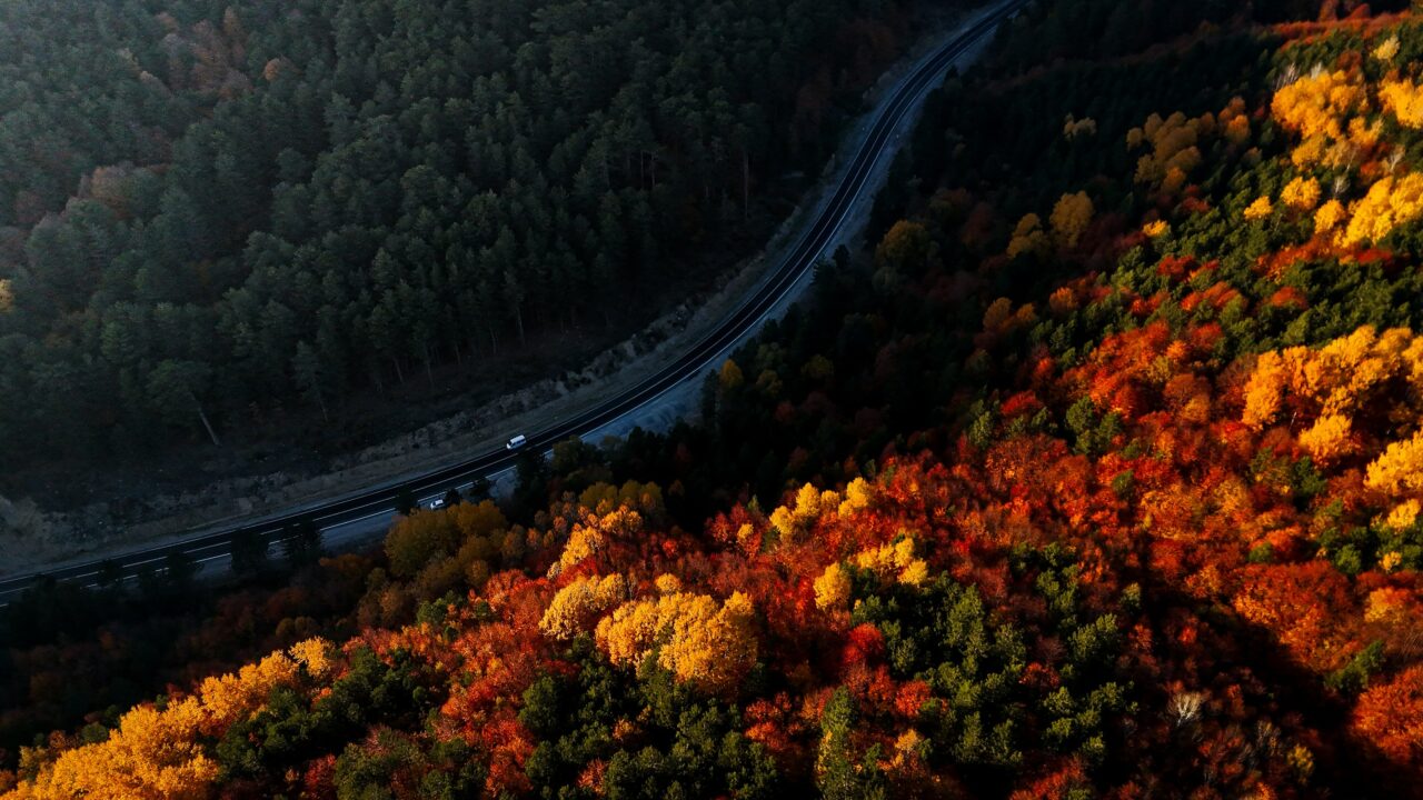 İç Ege’de yer alan yüzde 65’i ormanlarla kaplı Domaniç’te sonbahar, kıvrımlı yollarla bütünleşen ağaçların göz alıcı renkleriyle görsel şölen yaşatıyor.