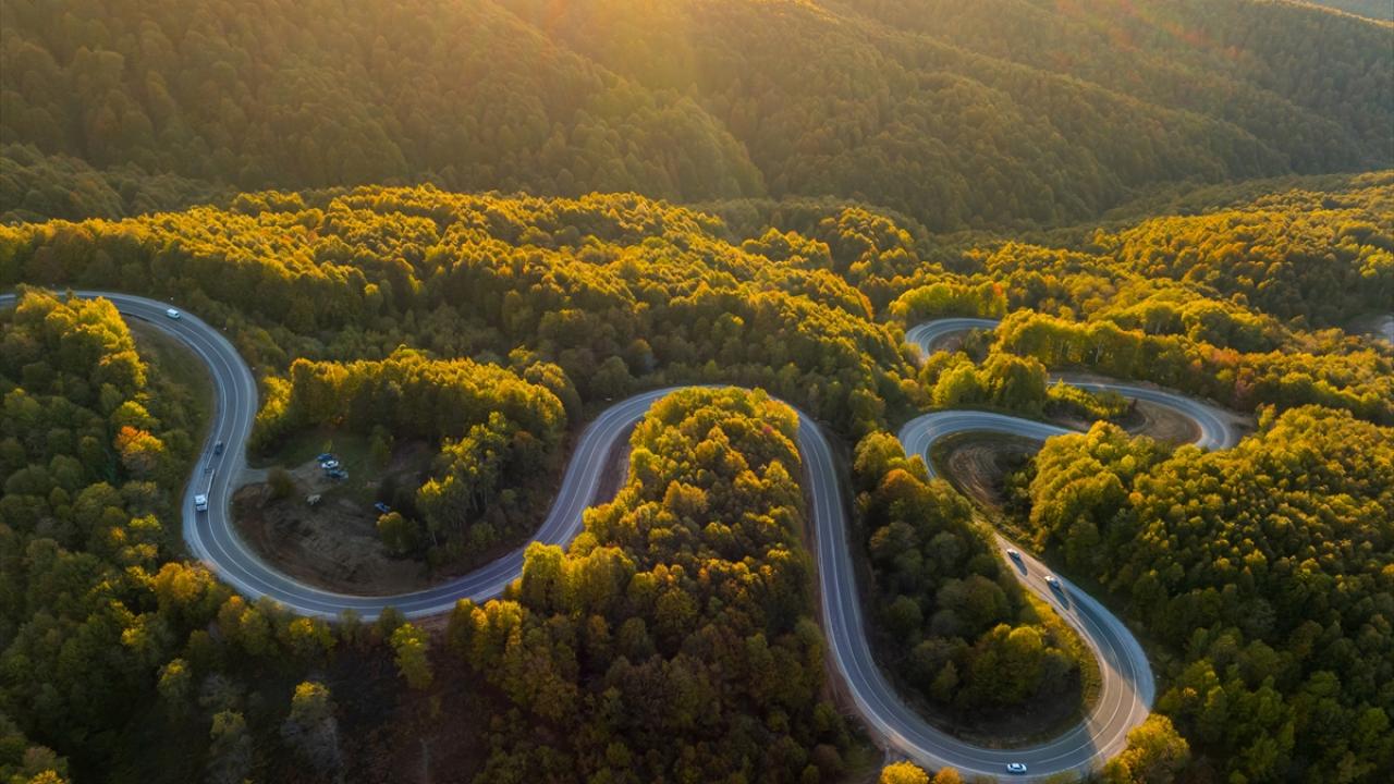 Kütahya’nın Domaniç ilçesindeki 1500 rakımlı Kocayayla Geçidi’ne çıkan virajlı yollar, sarı, kırmızı ve kahverengi tonlardaki sonbahar yapraklarıyla kaplandı.