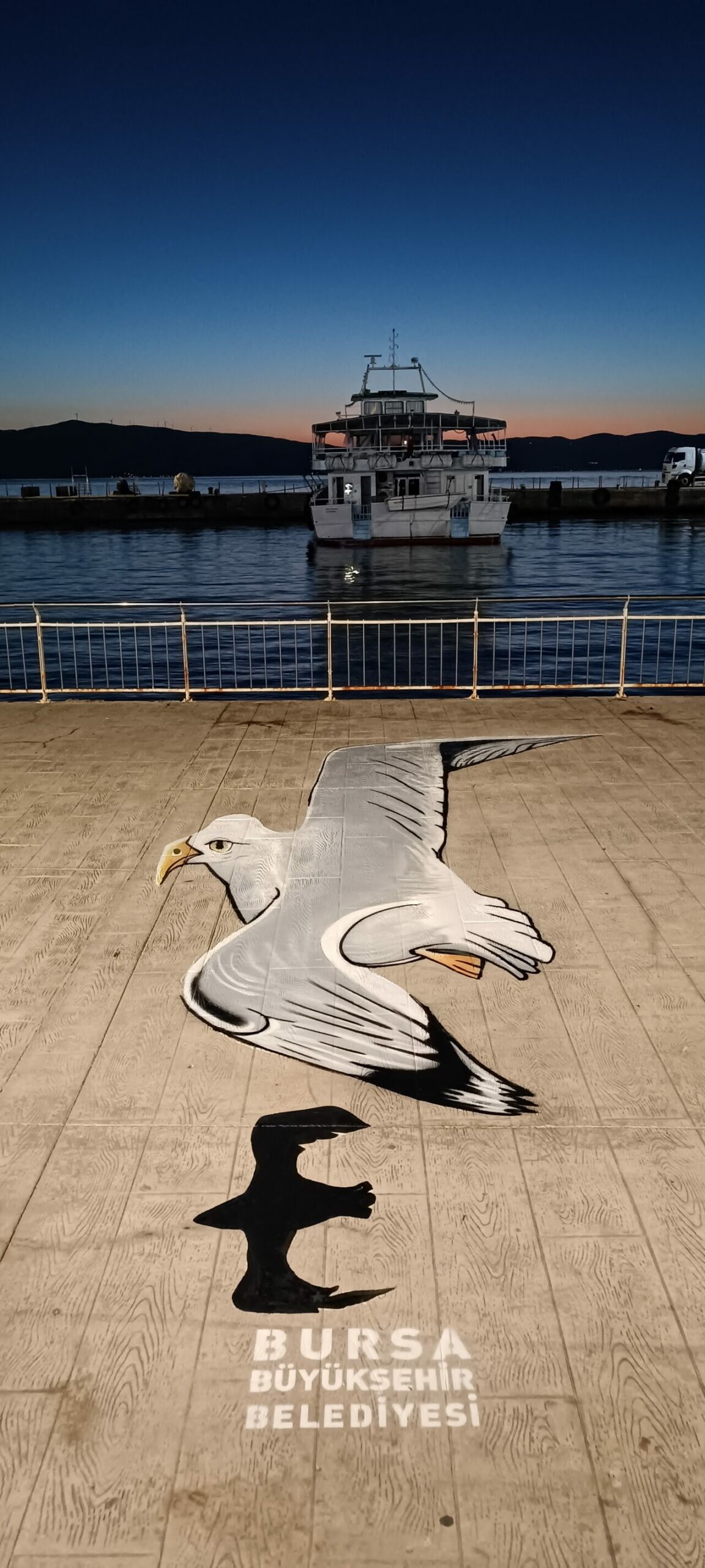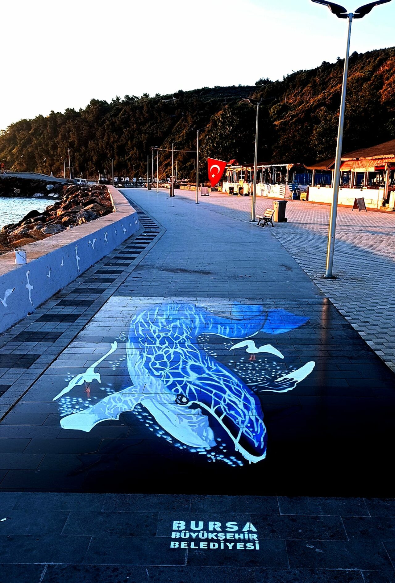 Boyaması tamamlanan Gemlik sahilindeki 3D kılıç balığı, Mudanya sahilindeki 3D martı ve Tirilye sahilindeki 3D balina uygulamaları görenleri gülümsetiyor. Vatandaşlardan da olumlu tepkiler alan yeni 3 boyutlu sanat uygulamaları, özellikle yaya hareketliliğinin yoğun olduğu bölgelerde yaygınlaştırılacak.