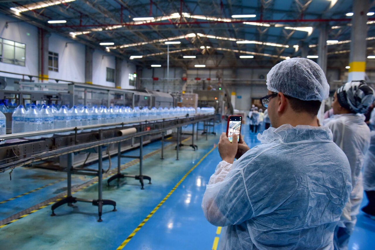 Cosme Crones 200 ml bardak su ve 19 litre geri dönüşümlü damacana hatları hakkında detaylı bilgiler alan gençler, Cosme hattındaki ham maddeden sevkiyata kadar uzanan üretim hikâyesini uzman ekiplerden dinledi.