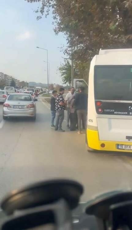 Olay, merkez Osmangazi ilçesi Ankara Yolu Caddesi Sırameşeler mevkiinde meydana geldi. Edinilen bilgiye göre, Şuayip A. işletmesinin önünde bulunan otobüs durağına aracını park etti. Yolcu indirmek için gelen belediye otobüsü ise Şuayip A.’nı aracını çekmesi için uyarıda bulununca taraflar arasında sözlü tartışma çıktı. Tansiyonun artmasıyla silahına sarılan Şuayip A.’yı çevredekiler durdururken, o anlar kameraya yansıdı.