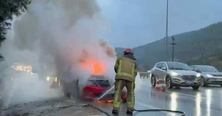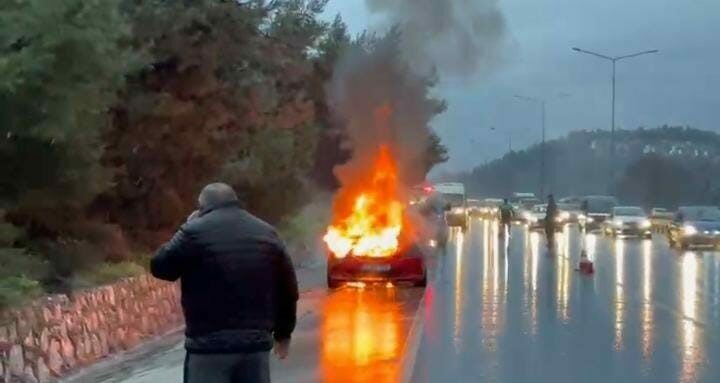 Olayda can kaybı veya yaralanma yaşanmazken, yangın sonucu otomobil kullanılamaz hale geldi.