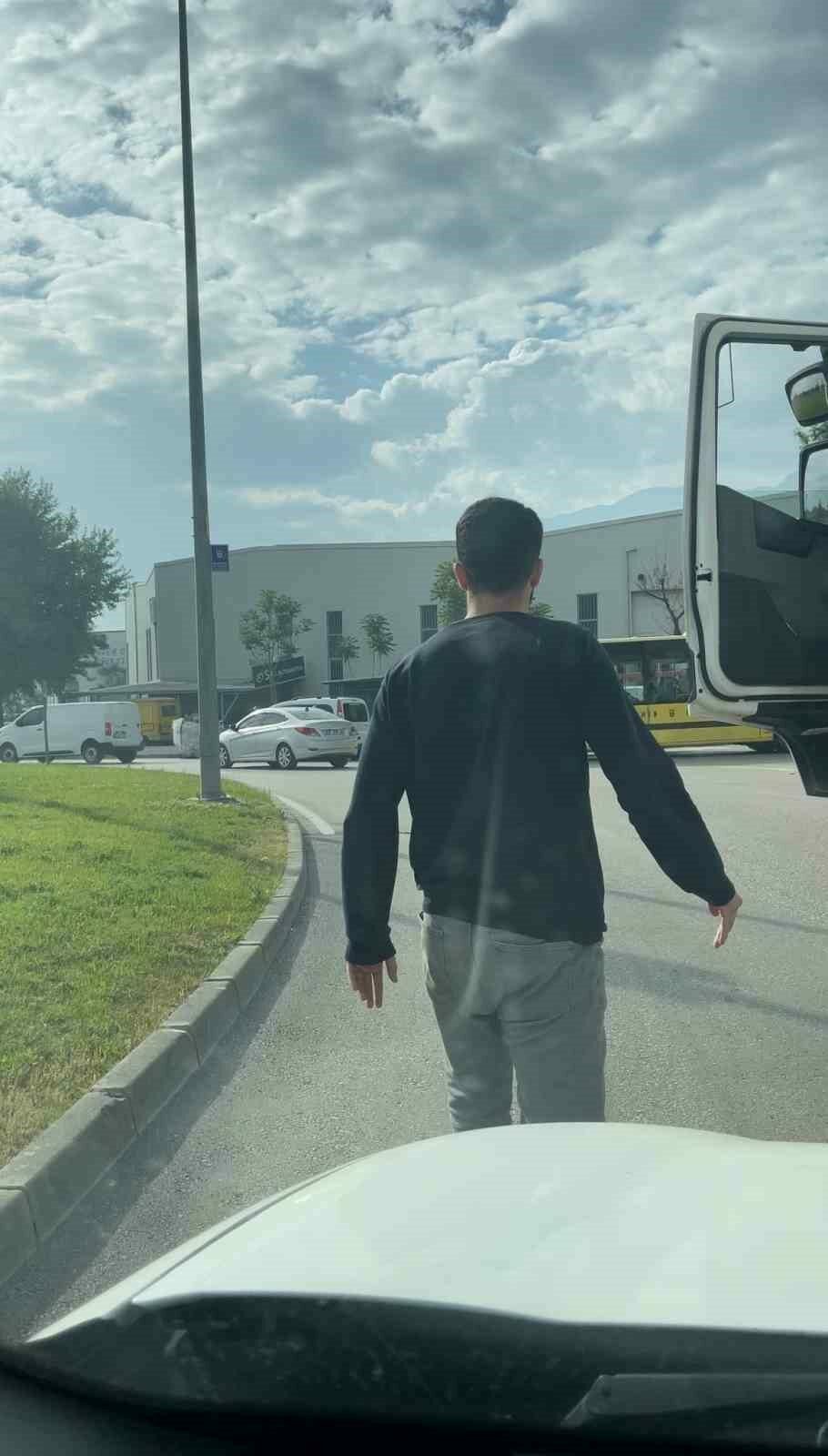 Panik dolu anlar yaşayan otomobil sürücü kornayla tepki gösterirken, aşağı inen tır sürücüsü ile sözlü tartışmaya döndü. Tarafların yaşadığı gergin anlar cep telefonu kamerasıyla kayda alınırken, otomobil sürücüsü, “Sen katil misin? Nasıl bir hızla ilerliyorsun?” diyerek tepki gösterdi. Tartışma sonrası aracına binen tır şoförü olay yerinden ayrılırken, otomobil sürücüsü ise 112 ekiplerine arayarak şikayette bulundu.