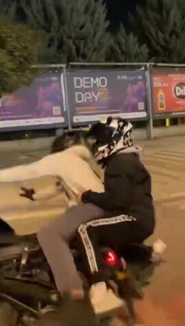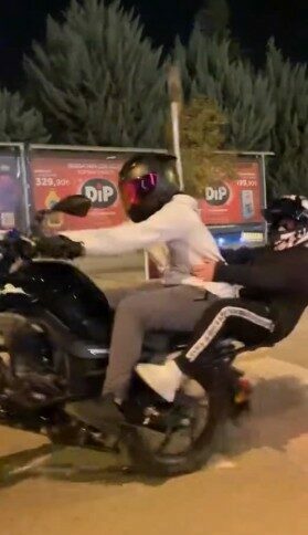 Kaza, 10 Kasım’da saat 22.00 sıralarında İnegöl Devlet Hastanesi yakınlarında meydana geldi. Enes Ö., yönetimindeki 16 BNZ 305 plakalı motosikletiyle seyir halindeyken ön tekerini kaldırmaya çalıştı. Kontrolünü kaybettiği motosiklet devrilirken, sürücü ve arkasındaki yolcu yola savruldu. Kazayı ufak sıyrıklarla atlatan iki kişi, çevredeki vatandaşların yardımıyla ayağa kalkarken, kaza anı ise başka bir sürücü tarafından cep telefonu kamerasıyla saniye saniye kayda alındı.