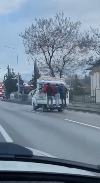 Tehlikeli yolculuklardan birinde el yapımı 3 tekerlekli bir araçla trafikte dolaşan bir kişi adeta ölüme meydan okudu. Diğerinde ise trafikte hızla seyreden bir kamyonetin arkasına tutunan 3 gencin tehlikeli yolculuğu görenleri şaşkına çevirdi.