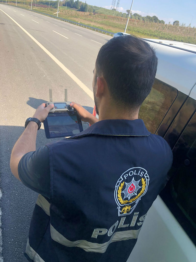 Drone ile gerçekleştirilen denetimde trafik kural ihlali yapan sürücülerine seyir halinde cep telefonu kullanmak, emniyet kemeri takmamak ve branda örtmemek gibi ihlallerden 4 bin 622 lira cezai işlem uygulandı.