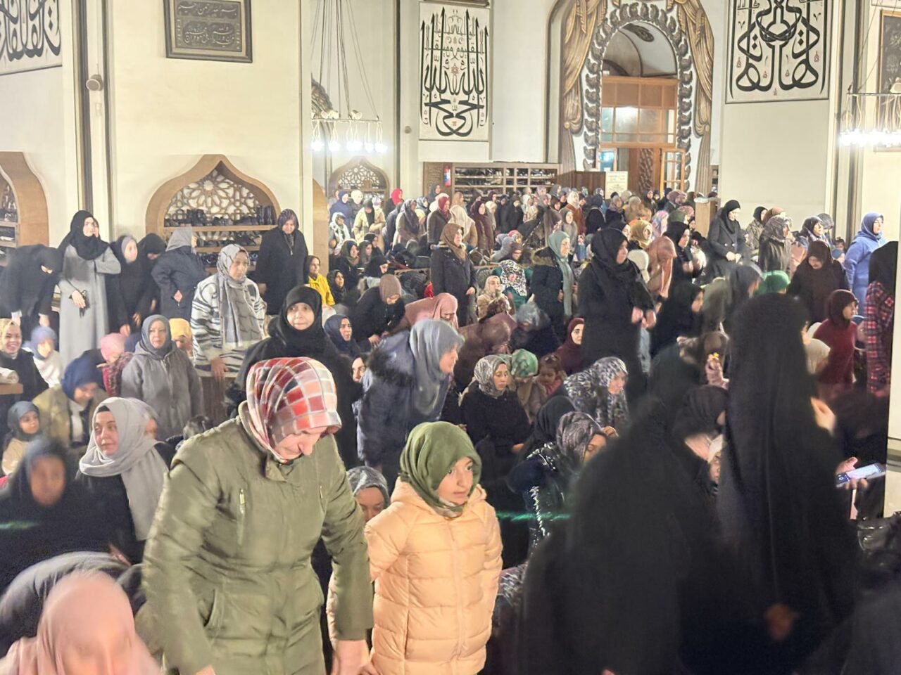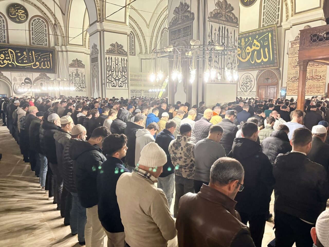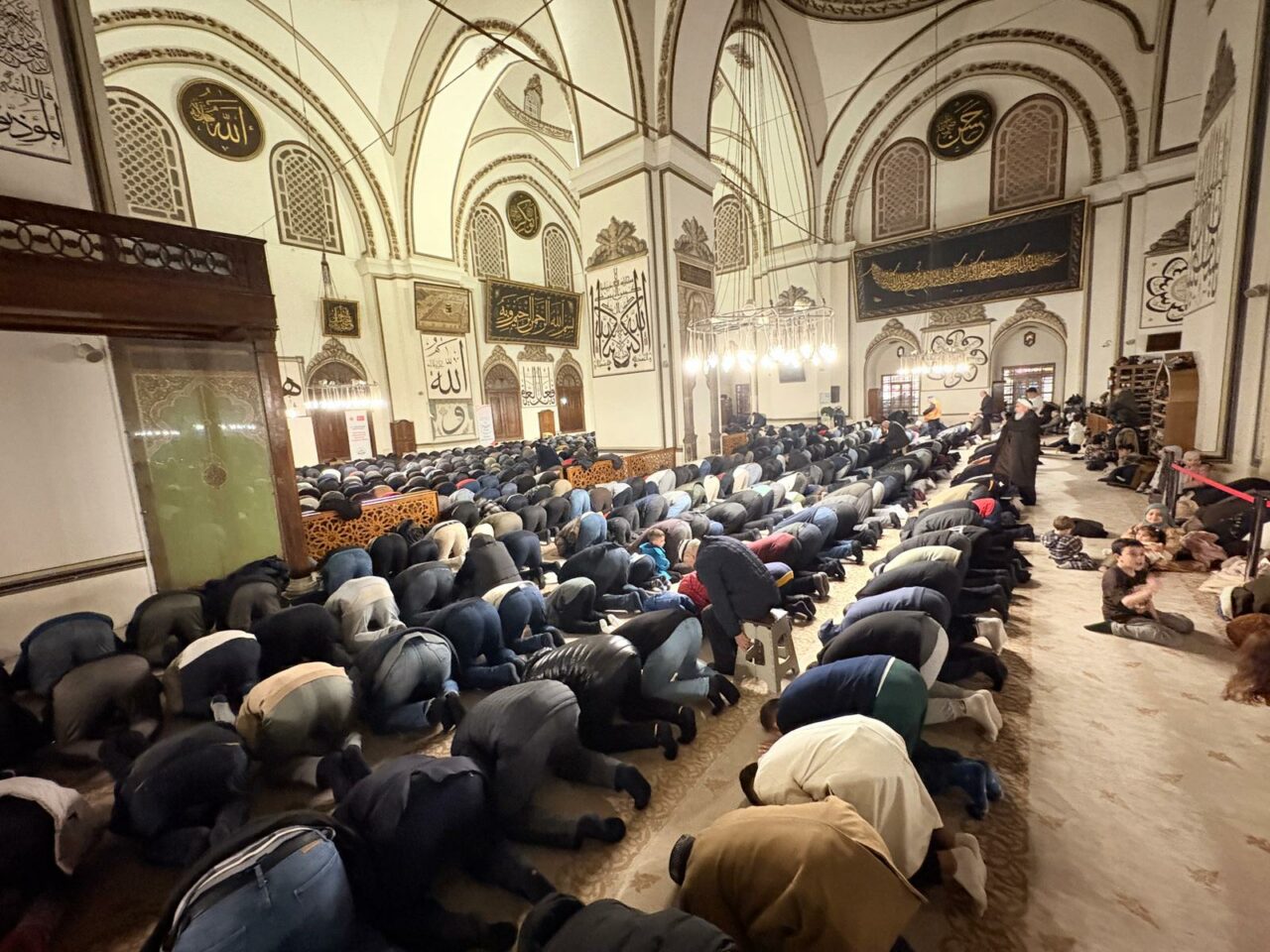 Türkiye’nin en önemli ibadet mekânlarından biri olan tarihi camide yoğunluk dikkat çekerken, cemaat cami içini tamamen doldurdu.