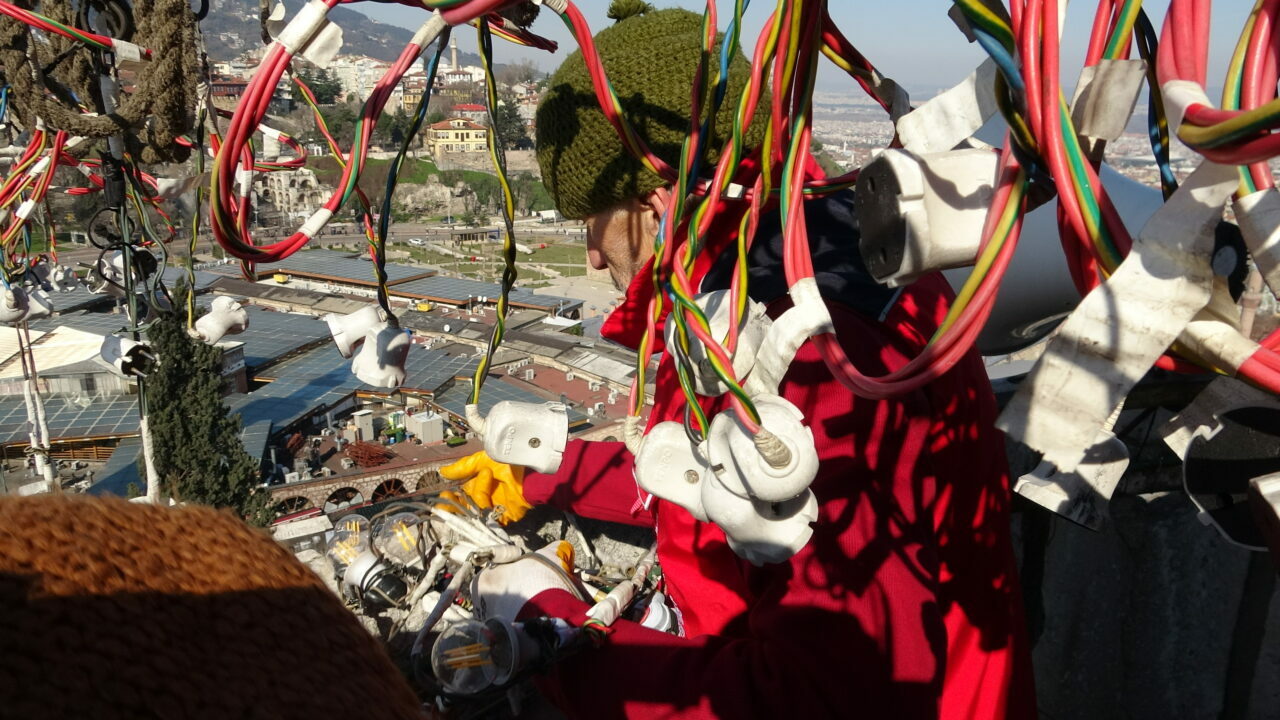 Gökyüzünde minareler arasında yazılar yazdıklarını belirten mahya ustası Kahraman Yıldız, “Şu anda Bursa’da ramazan ayının 2’nci mahyasını asmaya geldik. Mahya ramazan süsüdür. 400 yıldan fazladır Osmanlı sanatıdır, Türk icadıdır. Daha önce zeytin yağıyla yapılan kandiller, Ustamız Hacı Ali Ceyhan tarafından elektriğe dönüştürülmüştür. Biz de İstanbul, Edirne ve Bursa’daki selatin camilerde mahyaları, elektrikli sistemle mahyalarımızı takmaya devam ediyoruz” ifadelerini kullandı. (DHA)