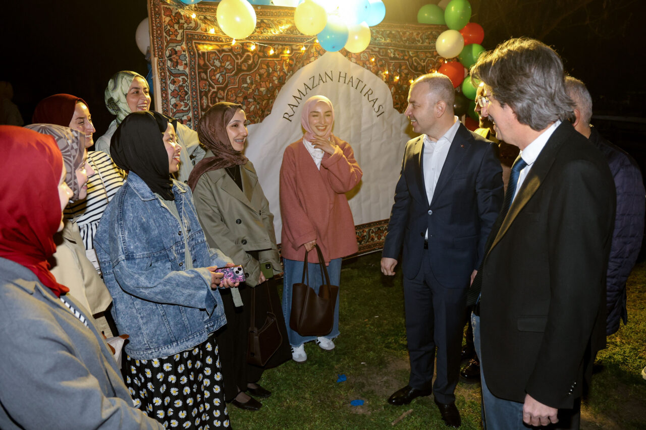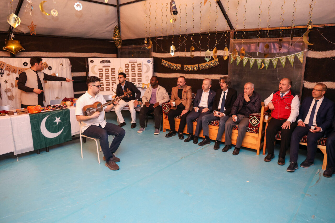 Hep birlikte açılan orucun ardından Sağlık, Kültür ve Spor Daire Başkanlığı tarafından oluşturulan Ramazan Çadırı’nı ziyaret eden heyet, daha sonra çim alanda orucunu açan gençlerle sohbet etti.