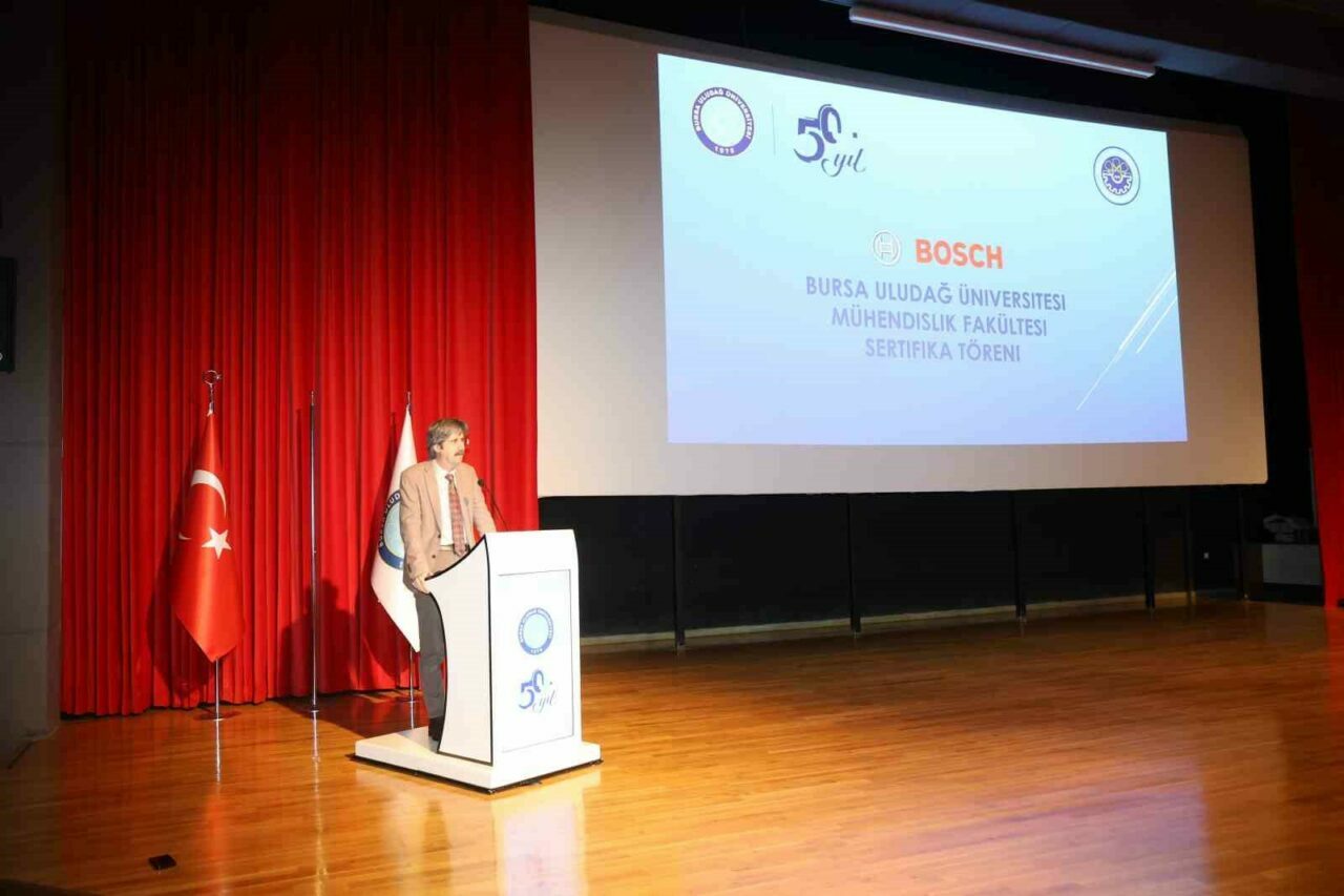 Prof. Dr. Mete Cengiz Kültür Merkezi’nde gerçekleştirilen törene BUÜ Rektörü Prof. Dr. Ferudun Yılmaz, Mühendislik Fakültesi Dekanı Prof. Dr. Adem Akpınar, Bosch İnsan Kaynakları Direktörü Aknur Ak, fakülte yöneticileri, akademisyenler ve öğrenciler katıldı.