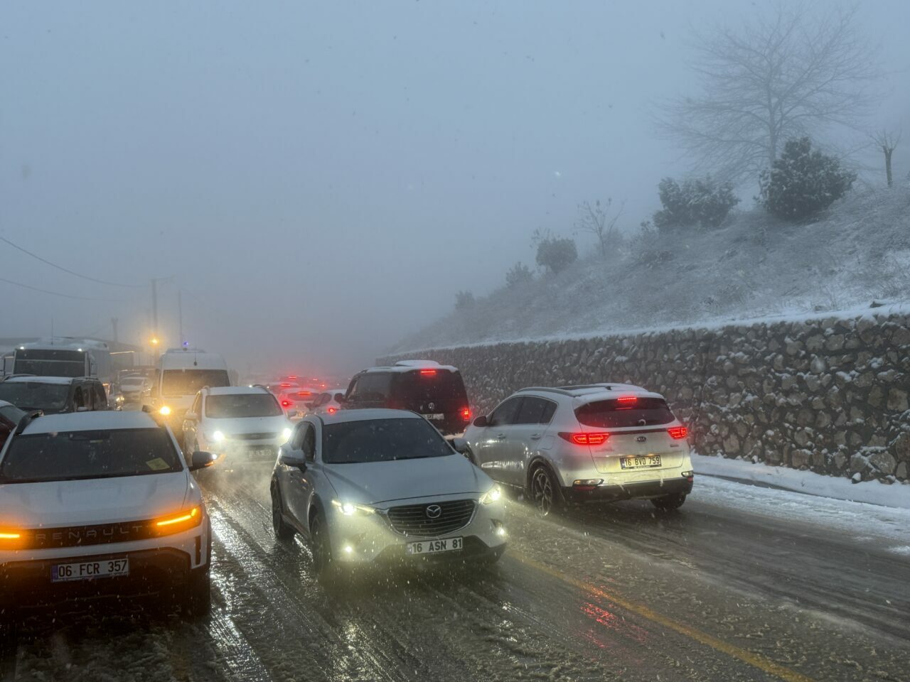 Uludağ’da geliş ve gidiş istikametine uzun araç kuyrukları oluştu.