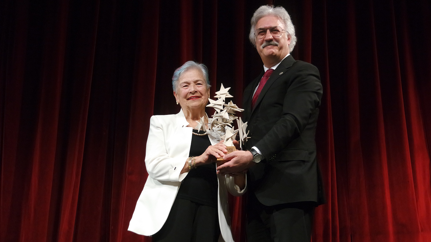 Konuşmaların ardından Karadağlı, Devlet Tiyatrolarının ilk kadın sanat yönetmeni, Bursa Devlet Tiyatrosundan emekli Feyha Çelenk’e, “Tiyatro Emek Ödülü”nü takdim etti.