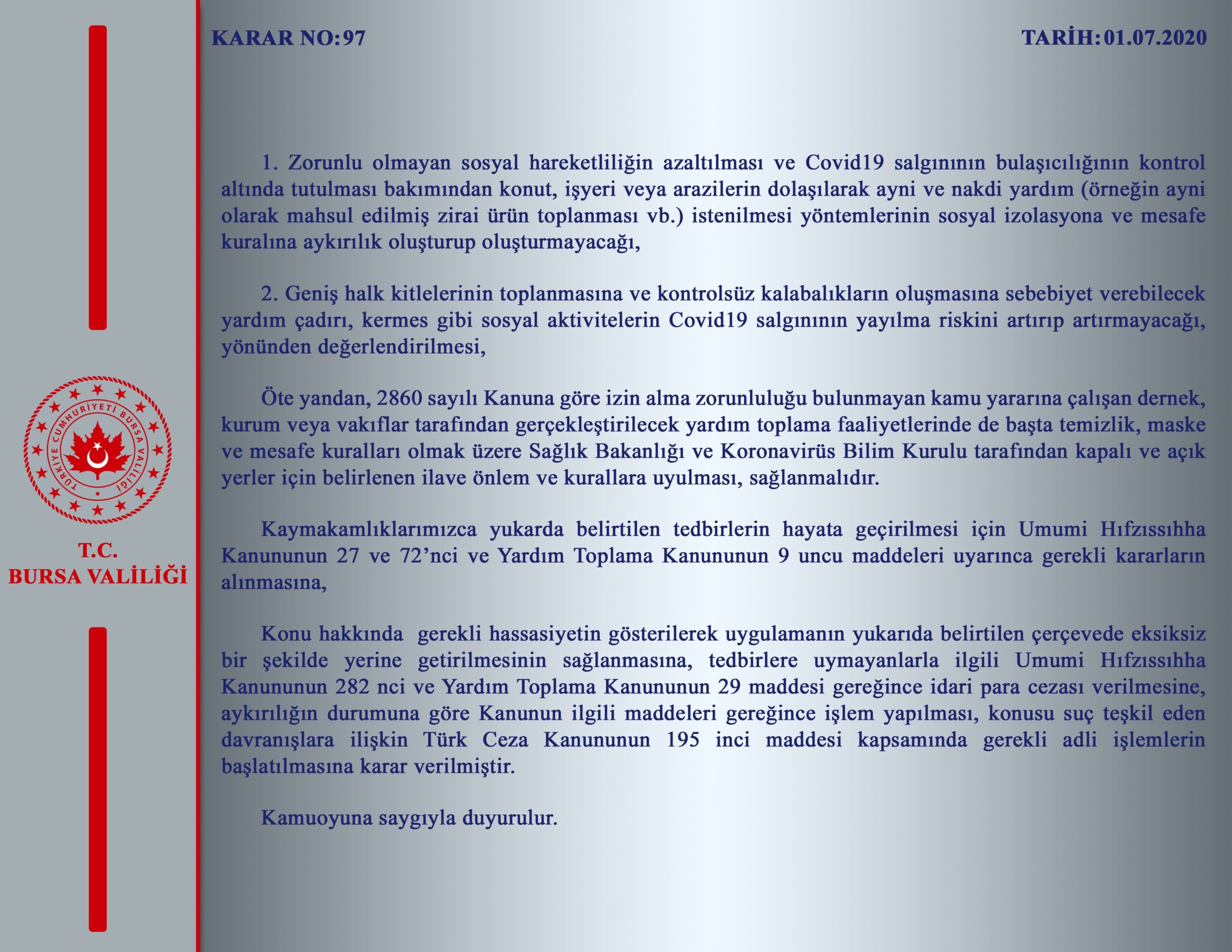 Ana Sayfa › Bursa › Merkez › Bursa Valiliği duyurdu! Bugünden itibaren…Bursa Valiliği duyurdu! Bugünden itibaren… Bursa Valiliği yeni İl Hıfzıssıhha Kurul Kararlarını açıkladı. Giriş: 01-07-2020 12:13Kaynak: MerkezBursa ABONE OL + - HABERİ PAYLAŞ