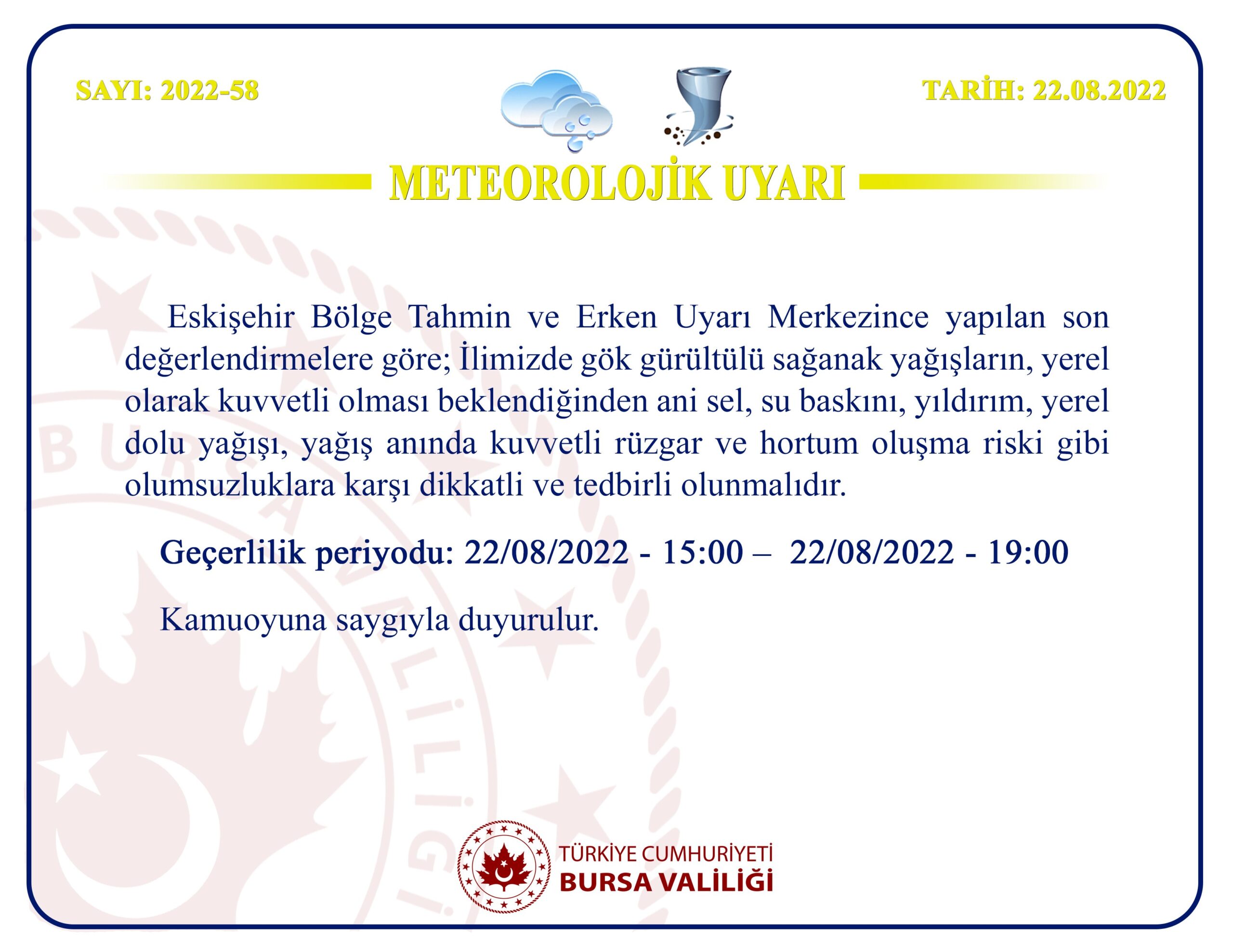 Bursa Valiliği’nin paylaştığı uyarıda;