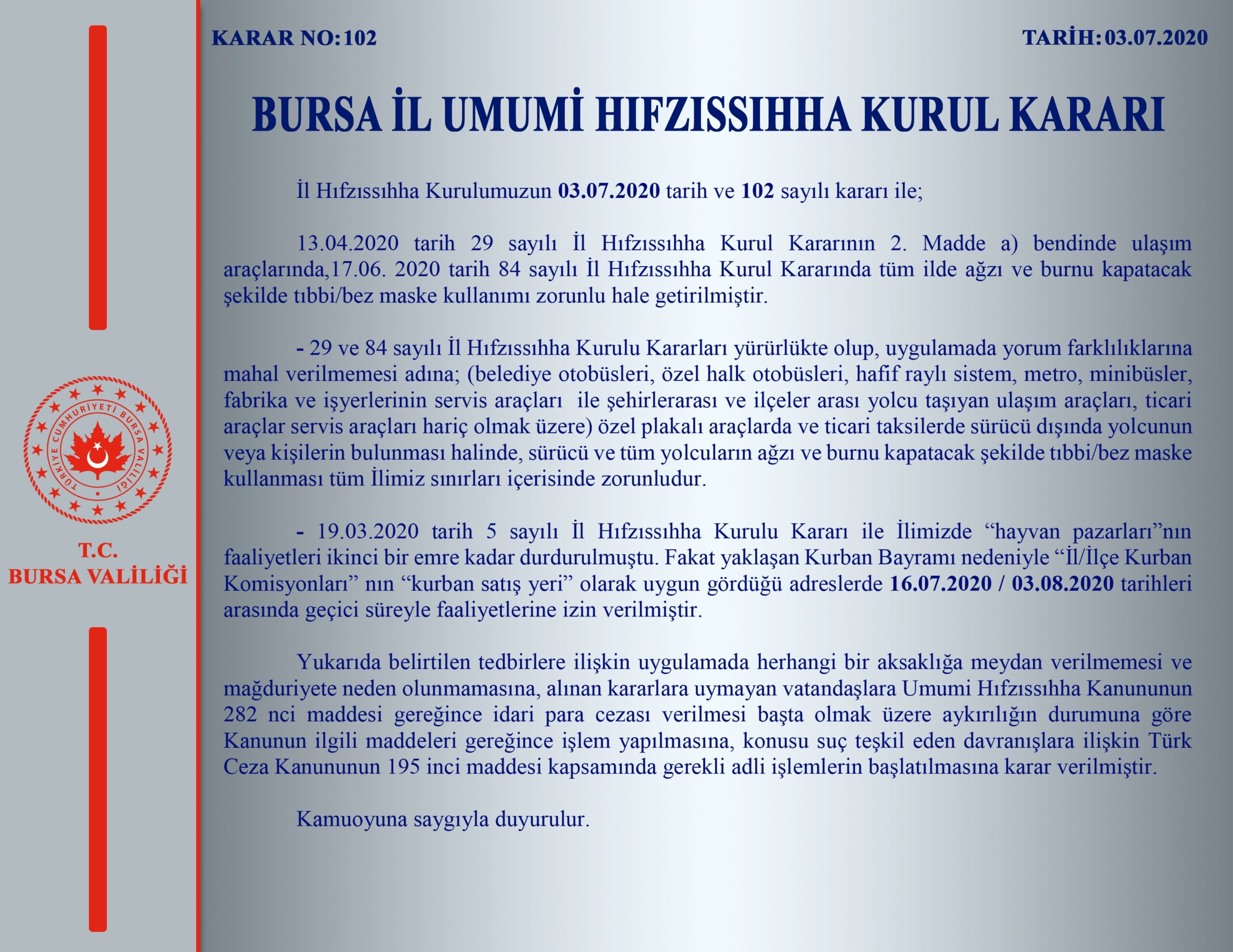 Ana Sayfa › Bursa › Merkez › Bursa Valiliği’nden açıklama! ‘Geçici süreyle izin verilmiştir’Bursa Valiliği’nden açıklama! ‘Geçici süreyle izin verilmiştir’ Bursa Valiliği alınan yeni İl Hıfzıssıhha Kurul Kararlarını açıladı. Giriş: 03-07-2020 16:21Kaynak: MerkezBursa ABONE OL + - HABERİ PAYLAŞ