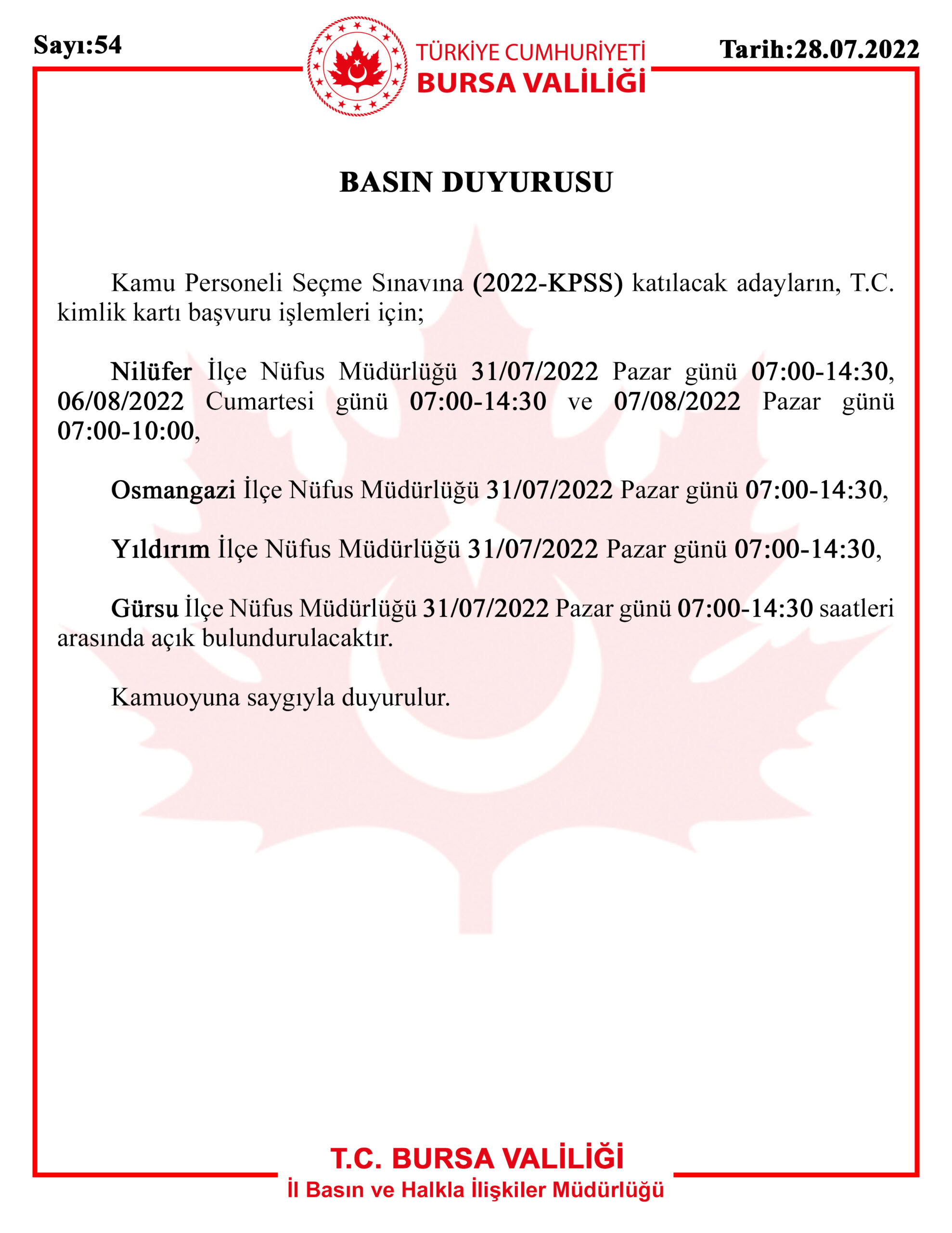 Ana Sayfa › Bursa › Merkez › Bursa Valiliği’nden flaş açıklamaBursa Valiliği’nden flaş açıklama Bursa Valiliği, KPSS’ye katılacaklar ilgilendiren bir açıklama yaptı. Giriş: 28-07-2022 10:53Güncelleme: 28-07-2022 14:06Kaynak: MerkezBursa ABONE OL + - Valilik’ten yapılan açıklama şöyle: HABERİ PAYLAŞ