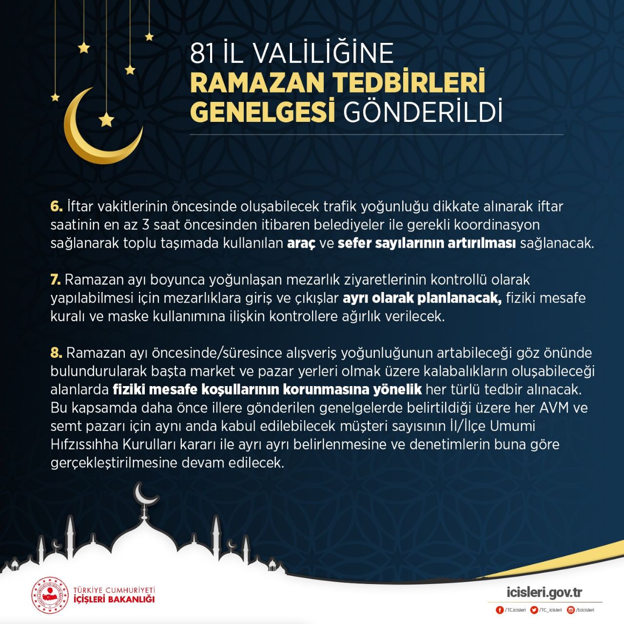 81 İl Valiliğine #Ramazan Tedbirleri Genelgesi gönderildi ⬇️https://t.co/z9RIoFWoir pic.twitter.com/q4NsCatR0p