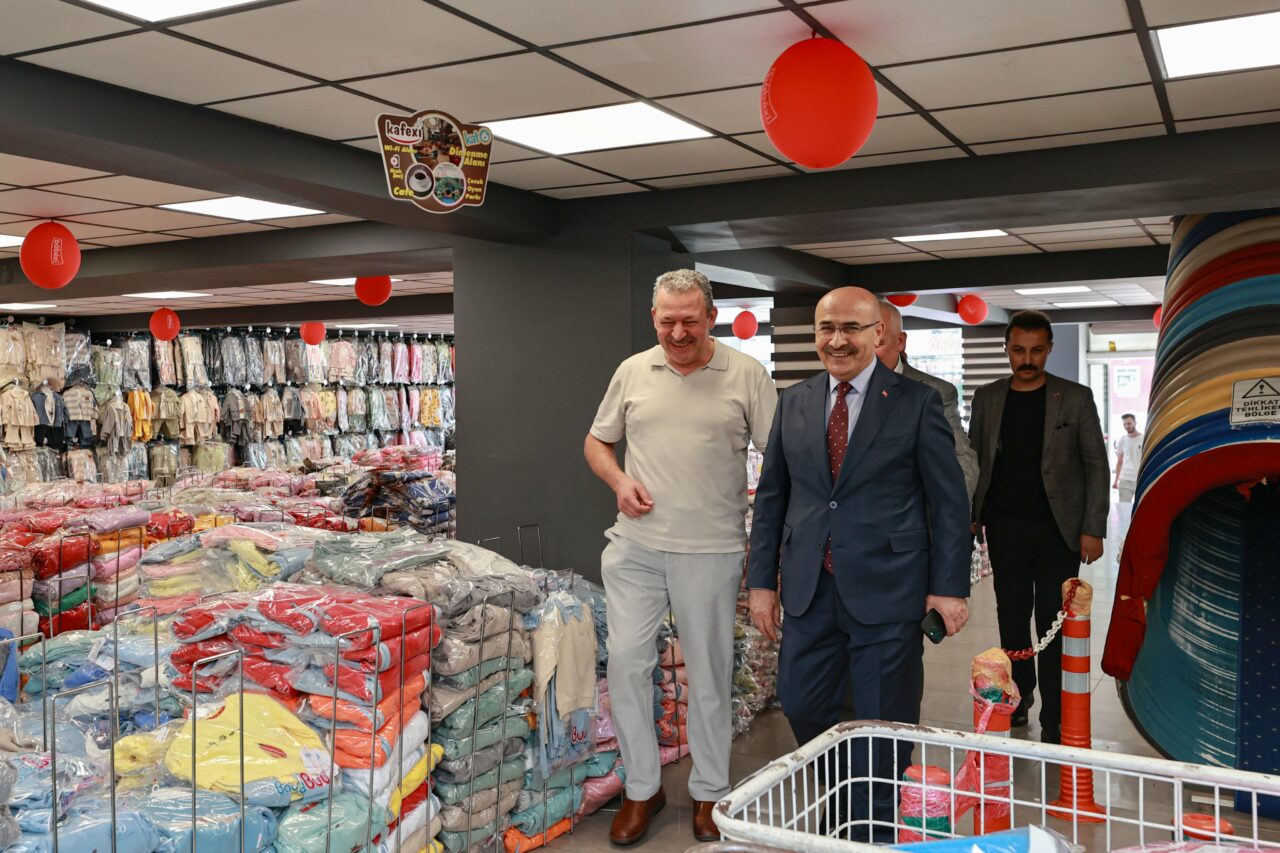Bursa Valisi Mahmut Demirtaş, Yıldırım ilçesi Vişne Caddesi üzerindeki bebe-çocuk konfeksiyon sektöründe faaliyet gösteren esnafı ziyaret etti.
