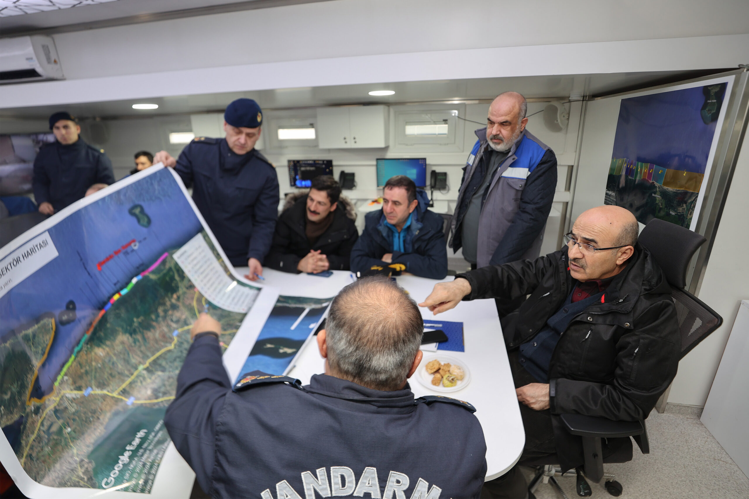 AFAD Mobil Koordinasyon Merkezi BATUHAN A isimli ticari gemideki kayıp mürettebatımıza ulaşmak için havadan ve karadan alan tarama ile denizden arama kurtarma şeklinde kesintisiz devam eden çalışmaların yürütüldüğü AFAD Mobil Koordinasyon Merkezi’nde istişarelerimizi gerçekleştirip yetkililerimizden bilgi aldık.