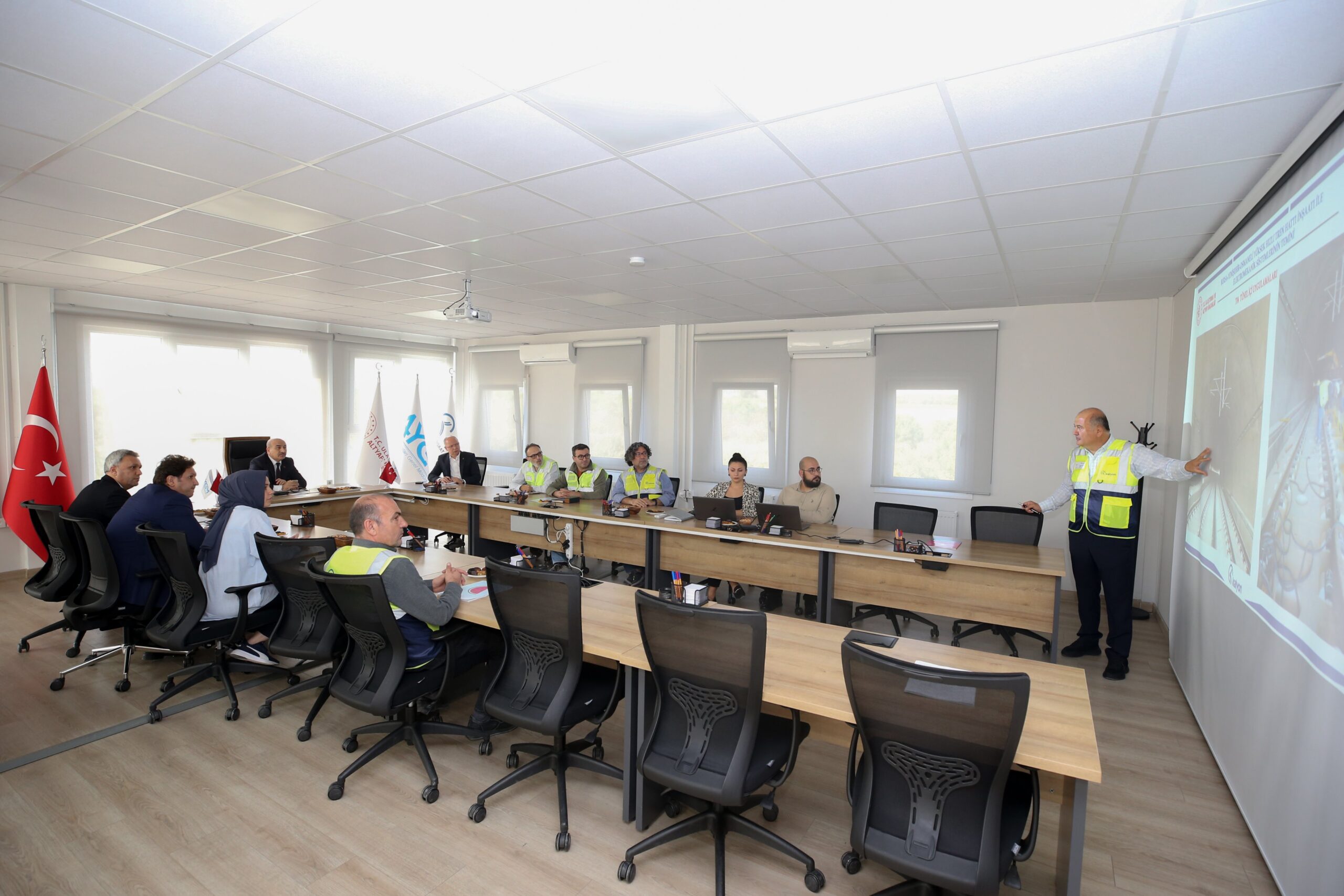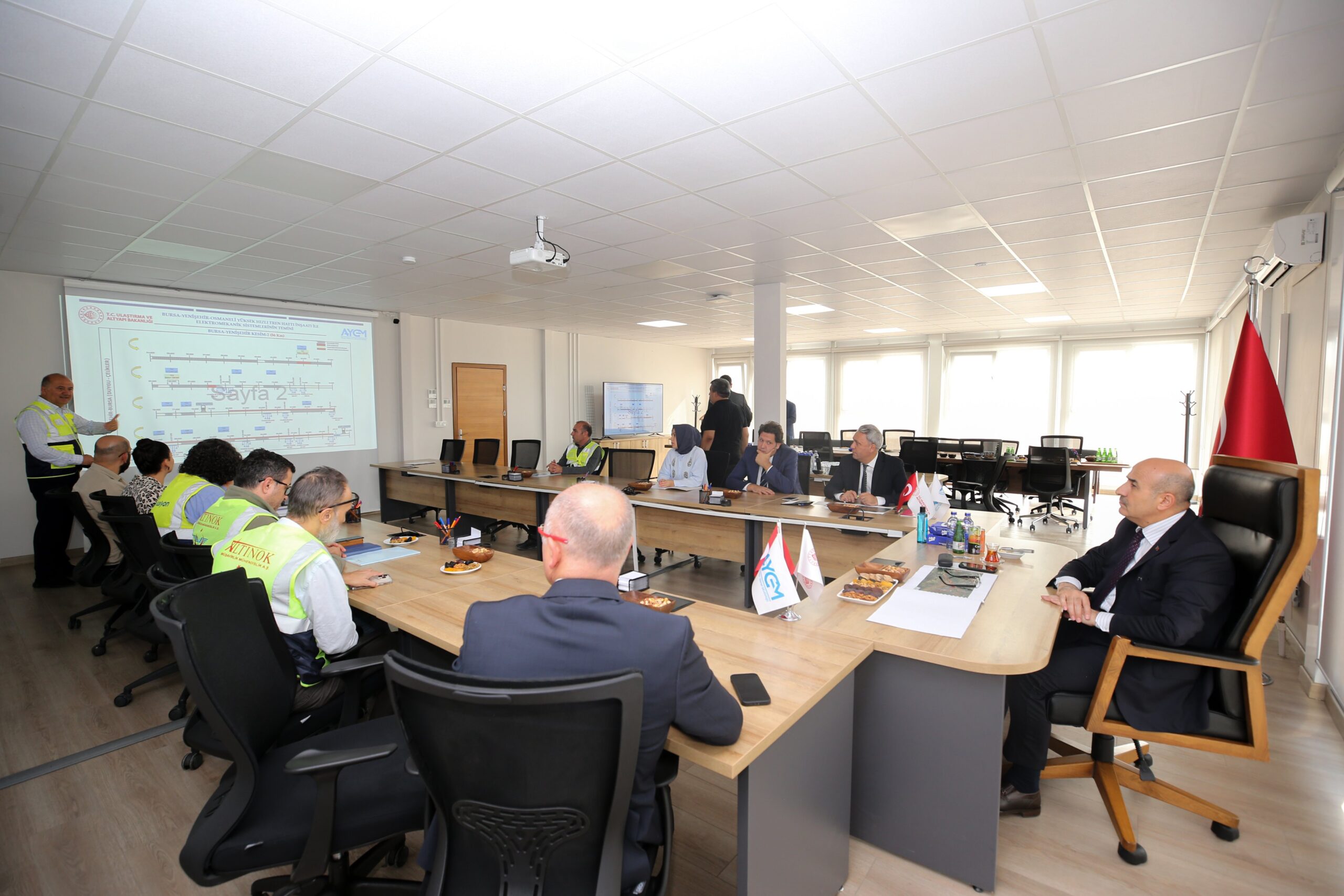 Bursa Valisi Mahmut Demirtaş ile beraberindeki heyet, yapımı devam eden Bursa Yüksek Hızlı Tren Hattı ile ilgili yapılan çalışmalar hakkında bilgilendirme toplantısına katıldı.
