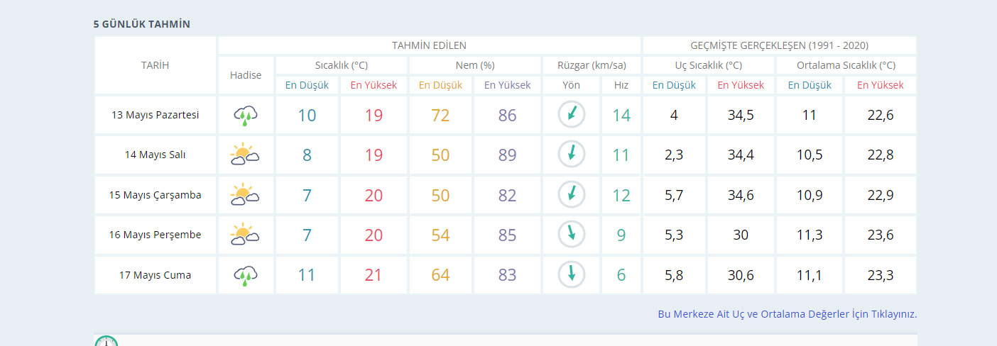 Salı günü yağışlı hava yerini güneşli bir havaya bırakırken sıcaklık en yüksek 19 derece.