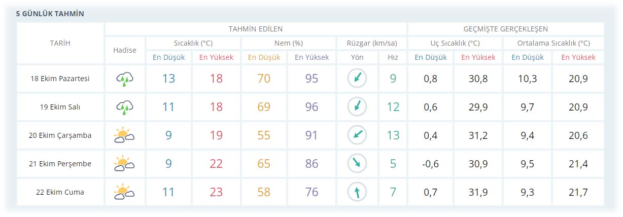 Hafta ortasında ise hava sıcaklığı 19 derece olurken yağış şehri terk ediyor.