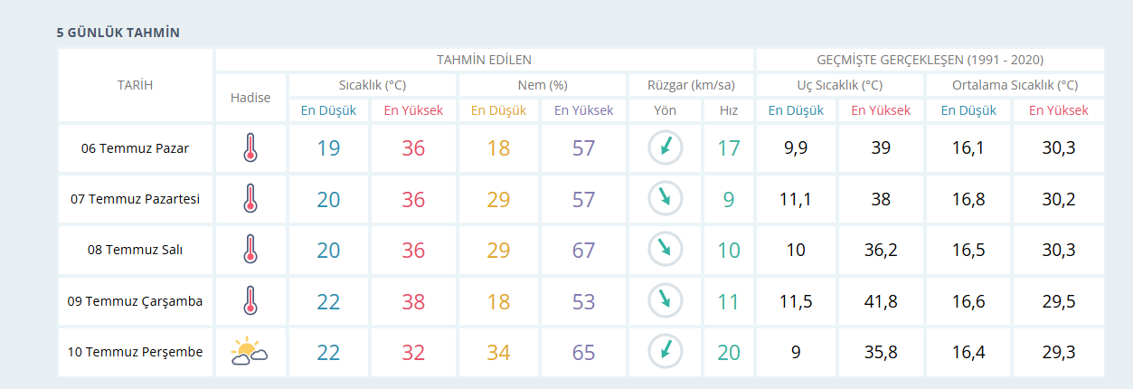Meteoroloji Genel Müdürlüğü’nden yayınlanan hava durumu tahmin raporuna göre önümüzdeki 5 gün Bursa’daki sıcaklıklar şöyle seyredecek: