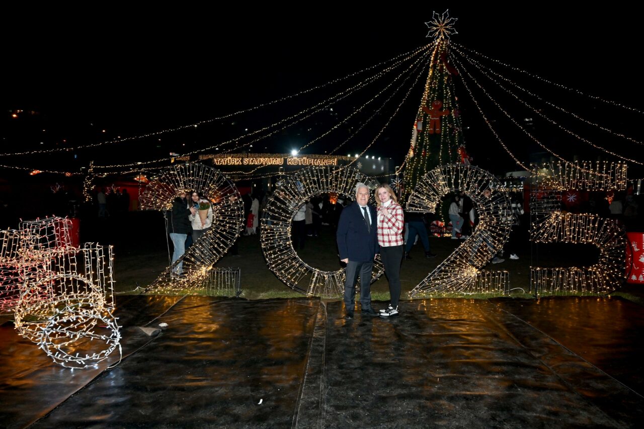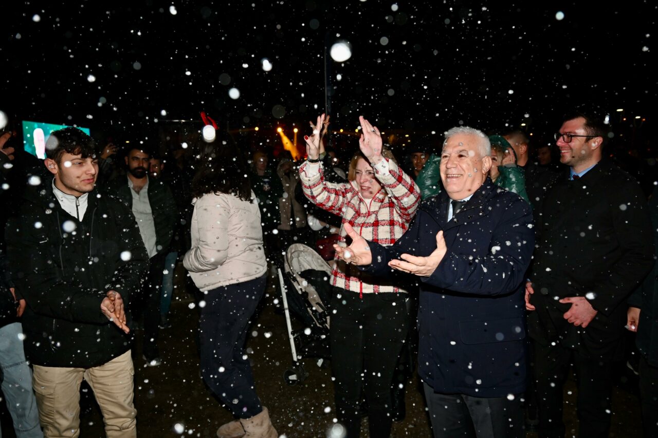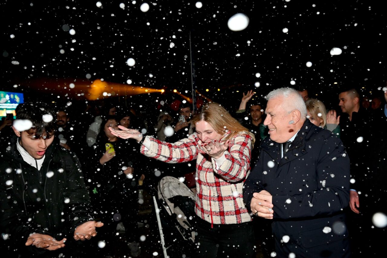 Bursa Büyükşehir Belediye Başkanı Mustafa Bozbey ve eşi Seden Bozbey de Yeni Yıl Meydanı’nı ziyaret ederek 2025’in coşkusunu vatandaşlarla paylaştı. Stantları gezerek işletme sahipleri ve vatandaşlarla sohbet eden Başkan Bozbey, eşi Seden Bozbey ile yeni yıl için çeşitli hediyelik eşyalar da satın aldı. Alandaki yapay kar yağışı altında Bursalılarların heyecanına ortak olan Başkan Bozbey ve eşi Seden Bozbey, alanda Bursa’nın yerel lezzetlerinin de tadına baktı. Meydanda kurulan sahnedeki DJ performansıyla gün boyu yeni yıl coşkusu yaşayan vatandaşlar, alanda karşılaştıkları Başkan Bozbey ve eşi Seden Bozbey ile bol bol hatıra fotoğrafı çektirdi. Bursa’nın yeni buluşma noktası olan alana çocuklarıyla birlikte gelen aileler, atlı karınca, tren, etkinlik alanları, fotoğraf çekim köşeleri, buz pisti ve yapay kar yağışı ile doyasıya eğlendi.