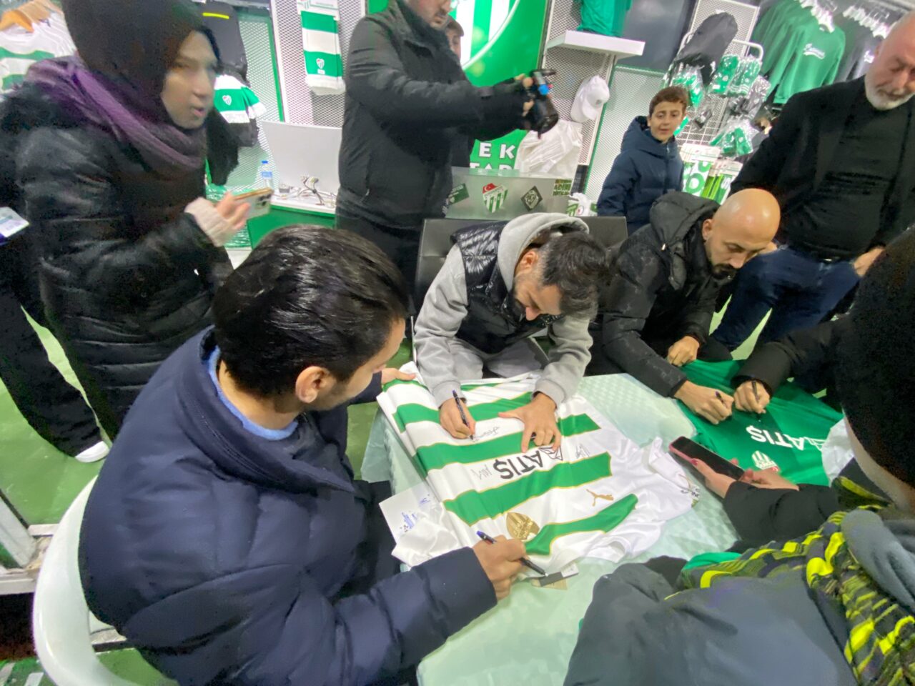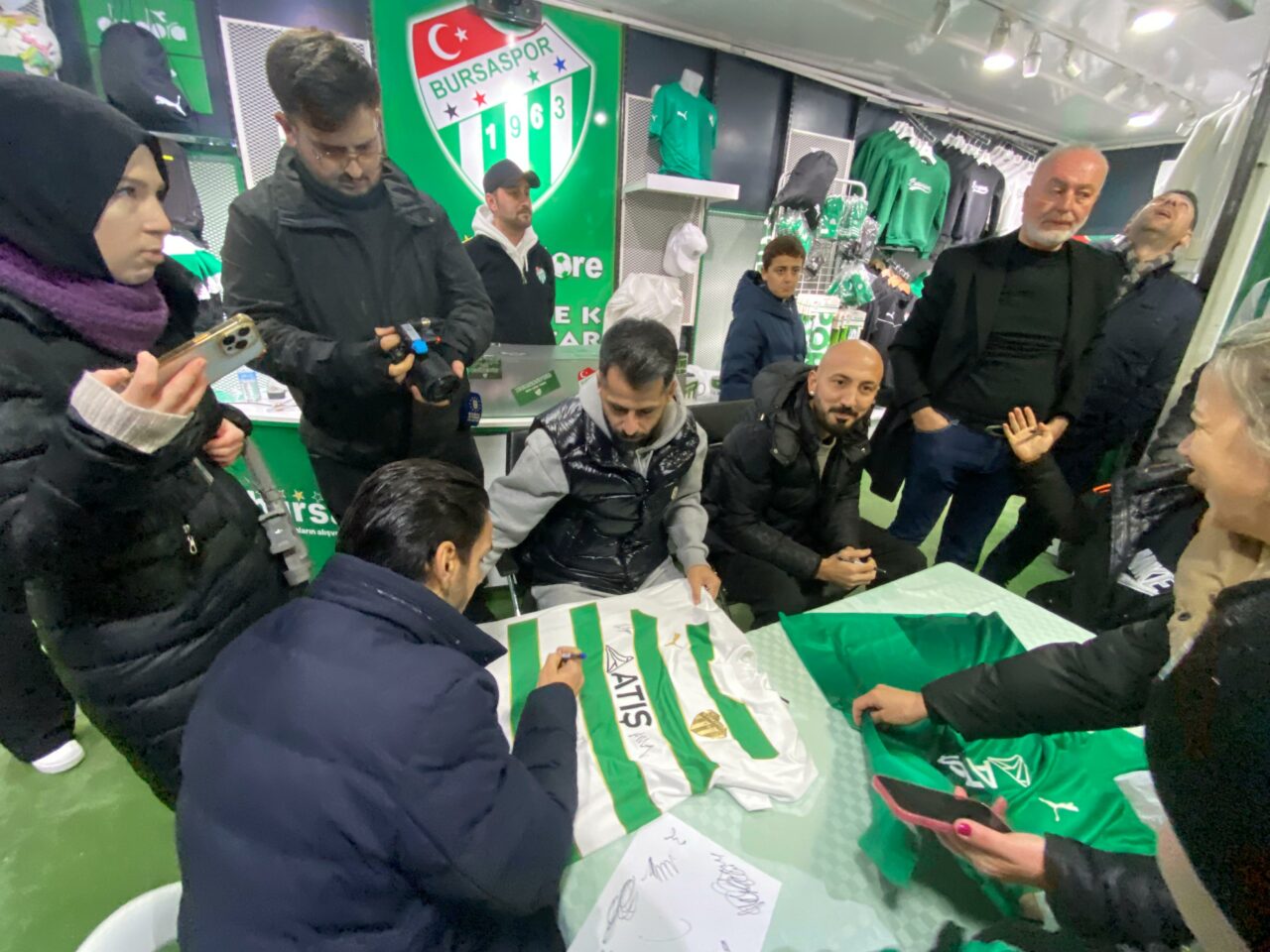 Bursastore tırında gerçekleştirilen imza günü etkinliğine taraftarlar büyük ilgi gösterirken metrelerce kuyruk oluşturdu.