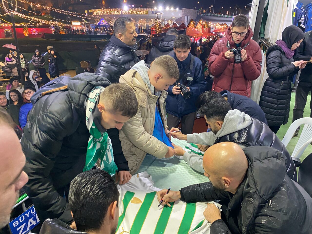 Tezahüratlarla soğuk havayı sıcağa çeviren yeşil beyaz sevdalıları futbolculara yeni sezon formalarını imzalatmak ve fotoğraf alabilmek için birbirleriyle yarıştı.
