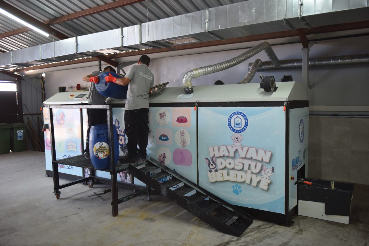 Yıldırım Belediyesi Sıfır Atık ve İklim Değişikliği Müdürlüğü’nde kurulan Mama Üretim Tesisi ile haftalık toplanan 4 ton yemek atığı kedi ve köpeklerin yiyeceği hazır mamaya dönüşüyor.