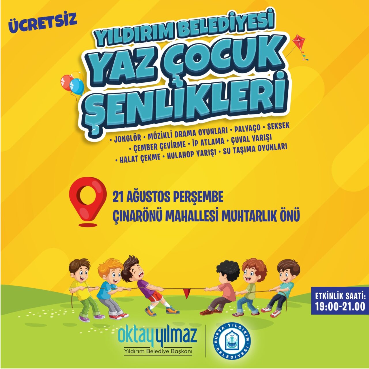 Yıldırım Belediyesi’nin X’teki hesabından yapılan açıklamaya göre; çuval yarışından illüzyon gösterisine, Karagöz-Hacivat gölge oyunundan palyaçoya kadar birçok sürpriz etkinlik, miniklerle buluşacak.