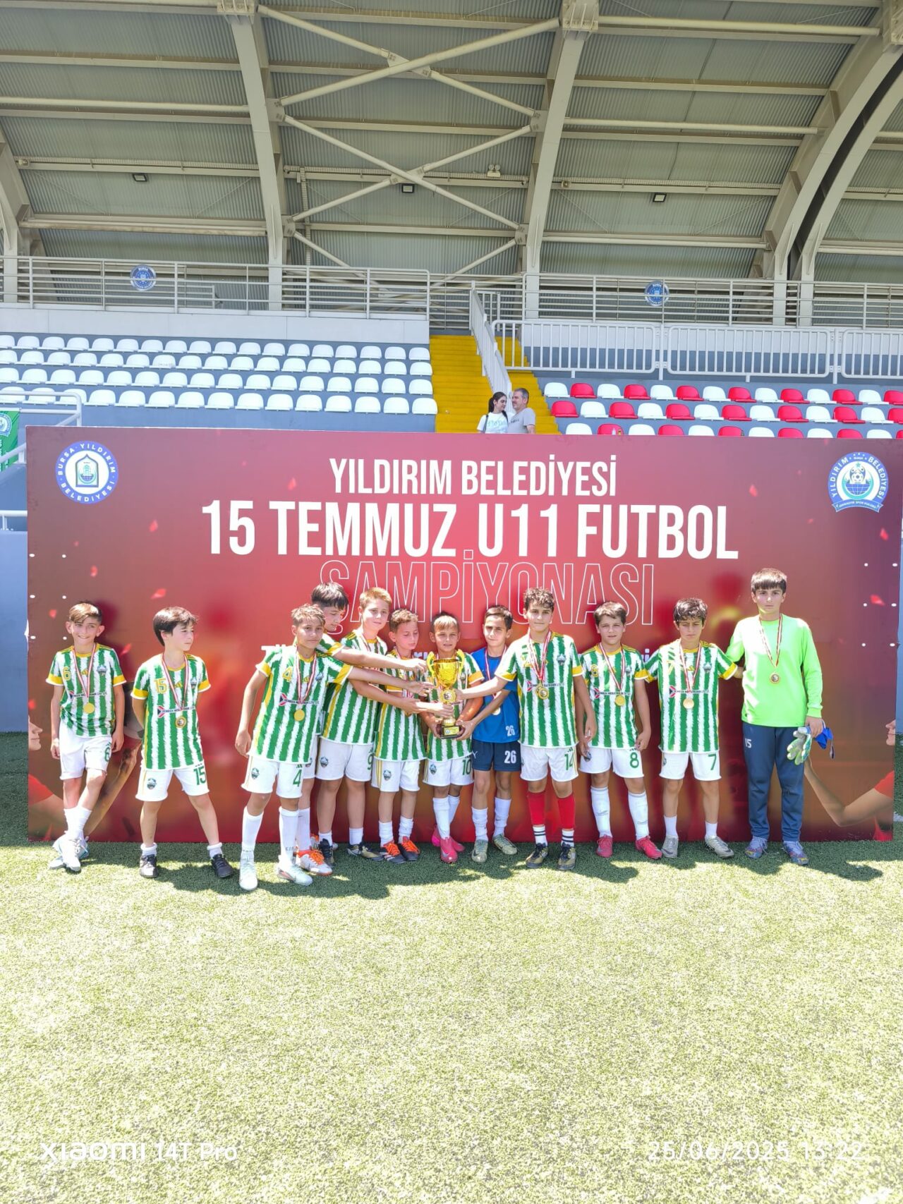 15 Temmuz Demokrasi ve Milli Birlik Günü haftası yaklaşırken, spor ve milli bilinci aynı sahada buluşturan Yıldırım Belediyesi, düzenlediği ’15 Temmuz U-11 Futbol Turnuvası’ ile ilçede futbol şöleni yaşattı. Vakıf Bera Spor Tesisleri’nde düzenlenen turnuvaya 25 takım ve 400 sporcu katıldı. İki gün süren turnuva kıran kırana maçlara sahne oldu. Kardeşlik, dayanışma ve centilmenlik ruhu içinde geçen mücadelelerin ardından, normal süresi 2-2 biten final maçını penaltı atışlarıyla kazanan Bursaspor şampiyon oldu. Çağlayan Spor’un ikinci, Kestel Genç Yetenekler Spor’un üçüncü olduğu turnuvayı Fethiye İdman Yurdu ise dördüncü sırada tamamladı.