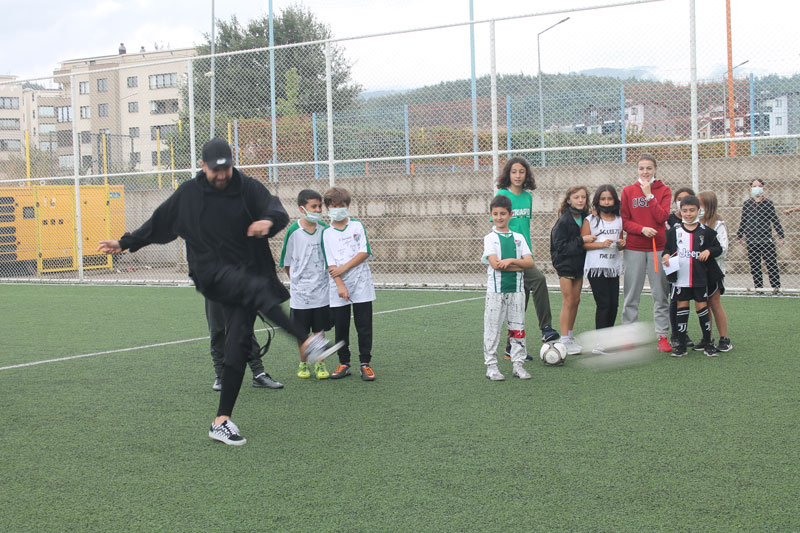Program futbolcudan alınan imza ile sona erdi, Öğrenciler yanlarında getirdikleri formaları, topları, anı defterlerini imzalattılar.