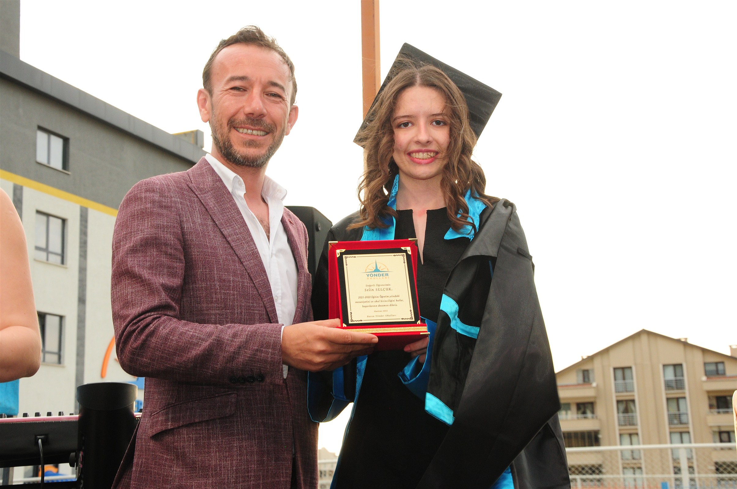 Bursa Yönder okulları tarafından okulun bahçesinde gerçekleştirilen mezuniyet töreninde öğrenciler oldukça coşkulu anlar yaşadılar. Saygı duruşunda bulunulması ve İstiklal Marşı ile başlayan mezuniyet törenin ardından Okul Müdürü Dilek Gül Güleryüz Yönderli gençlere seslendi, ‘’Biz sizi hayata hazırlamadık; şu taştan binayı hayatın kendisi yaptık. İşte şimdi tam olarak hazırsınız kanatlanıp uçmaya, yolunuz açık bahtınız aydınlık olsun.’’ diyerek konuşmasını bitirdi. Bursa Yönder Okulları Kurucusu Ersin Yılmaz ise, ‘’Sevgili gençler, siz mezun olabilin diye, hayallerinize kavuşun diye bu kadar emek bir araya geldi. Önce kendi emeğinizi, sonra sizin iyiliğiniz için mutluluğunuz için atan kalplerin beklentisini boşa çıkarmayacağınıza inanıyor, hepinize ömür boyu başarı ve mutluluk diliyorum diye konuşmasını bitirdi. Büyük hayaller ve küçük başarı farklarıyla adım atılan bu dönemde başlıca hedeflerden biri de akademik başarı oldu. Yapılan konuşmaların ardından ortaokul okul birincisi Kağan Karasu mezuniyet kütüğüne ismini çaktı ve Anadolu Lisesi birincisi Selin Selçuk ve Fen Lisesi birincisi Cemre Naz Öksün’ün mezuniyet kütüğüne ismini çakmasından sonra mezun olan öğrencilere plaket ve belgeleri takdim edildi. Geçiş Töreni ile piste gelen öğrencilerin birbirinden anlamlı ve eğlenceli pankartları büyük ilgi gördü. Duygusal anların yaşandığı Bursa Yönder Okullarında ilkokulu, ortaokulu ve liseyi tamamlayan öğrenciler hep birlikte büyük bir heyecanla keplerini attıktan sonra konser ile eğlenmeye devam ettiler. Bursalı müzik grubunun gerçekleştirdiği performans ile mezuniyet sevincini yaşayan öğrenciler ve aileleri eğlencenin tadını doyasıya yaşadılar.