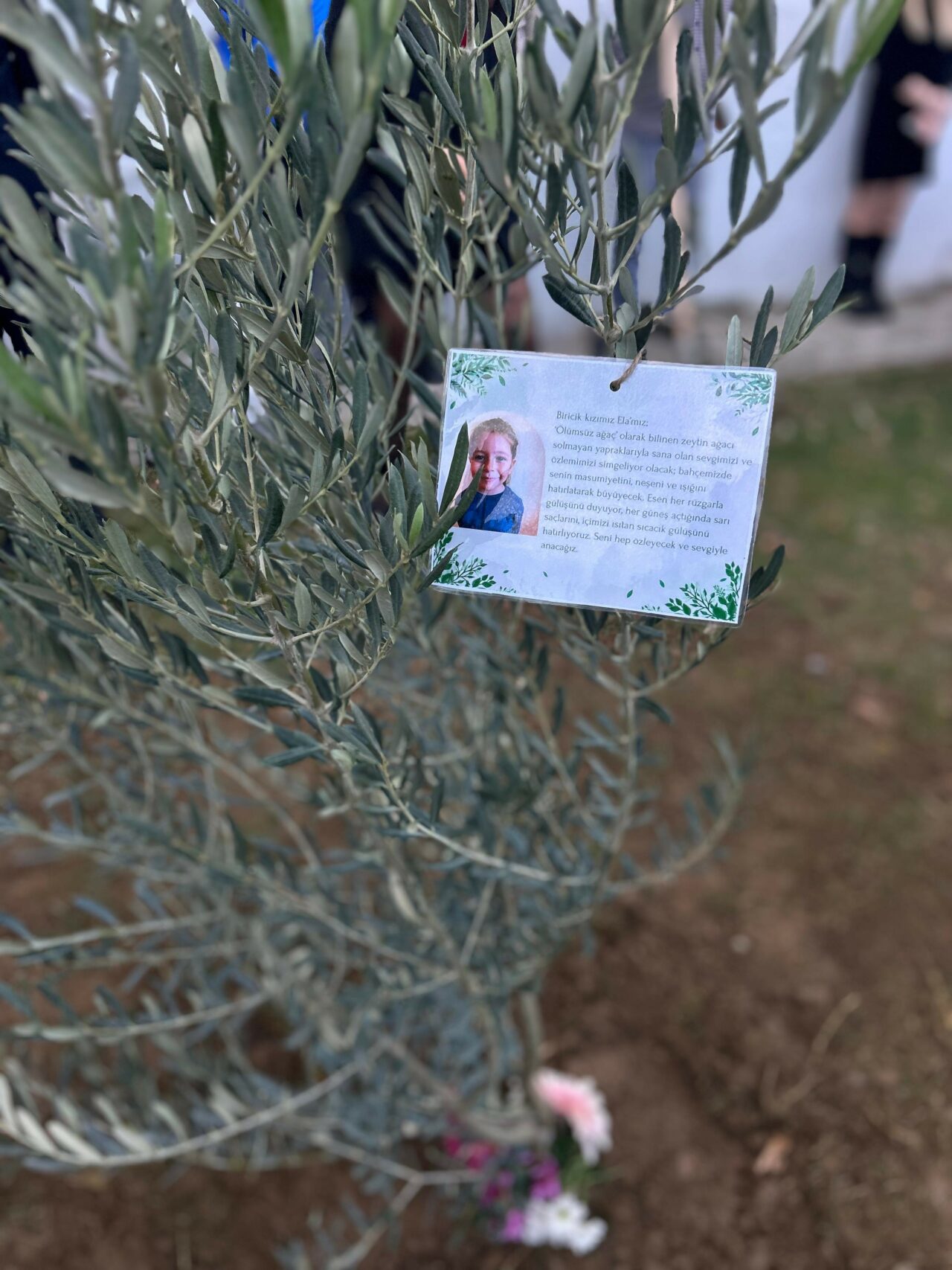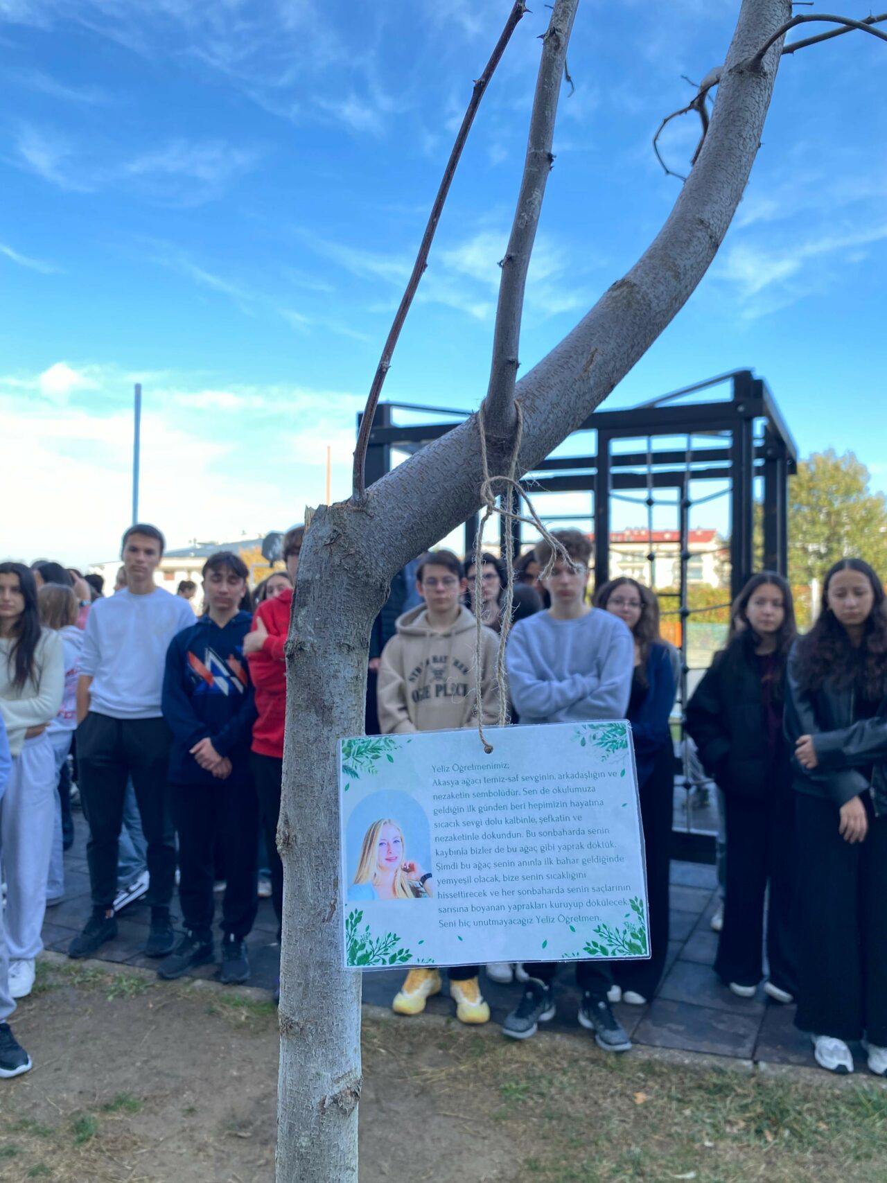 Fidanlara Yeliz Efe ve kızı Ela Efe’nin ismi verildi. Fidan dikiminin ardından öğretmenin anısına 1 dakikalık saygı duruşunda bulunularak, İstiklal Marşı okundu.