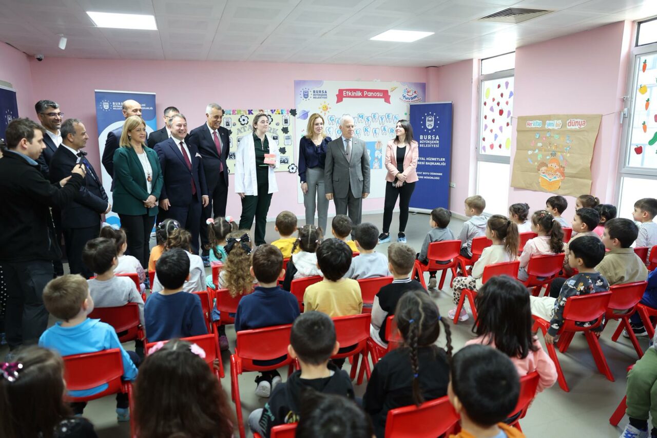 Bursa Büyükşehir Belediye Başkanı Mustafa Bozbey ve eşi Seden Bozbey de Gürsu’daki Kurtuluş Bursa Yuvam Çocuk Etkinlik Merkezi’ni ziyaret ederek çocuklarla bir araya geldi. Çocuklarla birlikte uzman hekimlerin doğru fırçalama tekniklerini dinleyen Başkan Mustafa Bozbey, etkinliğin sonunda miniklere diş fırçası ve diş macunu hediye etti.