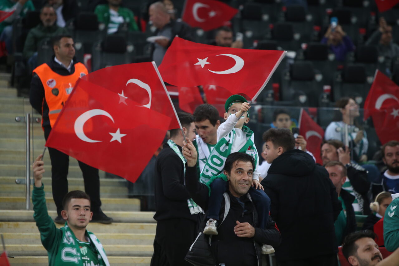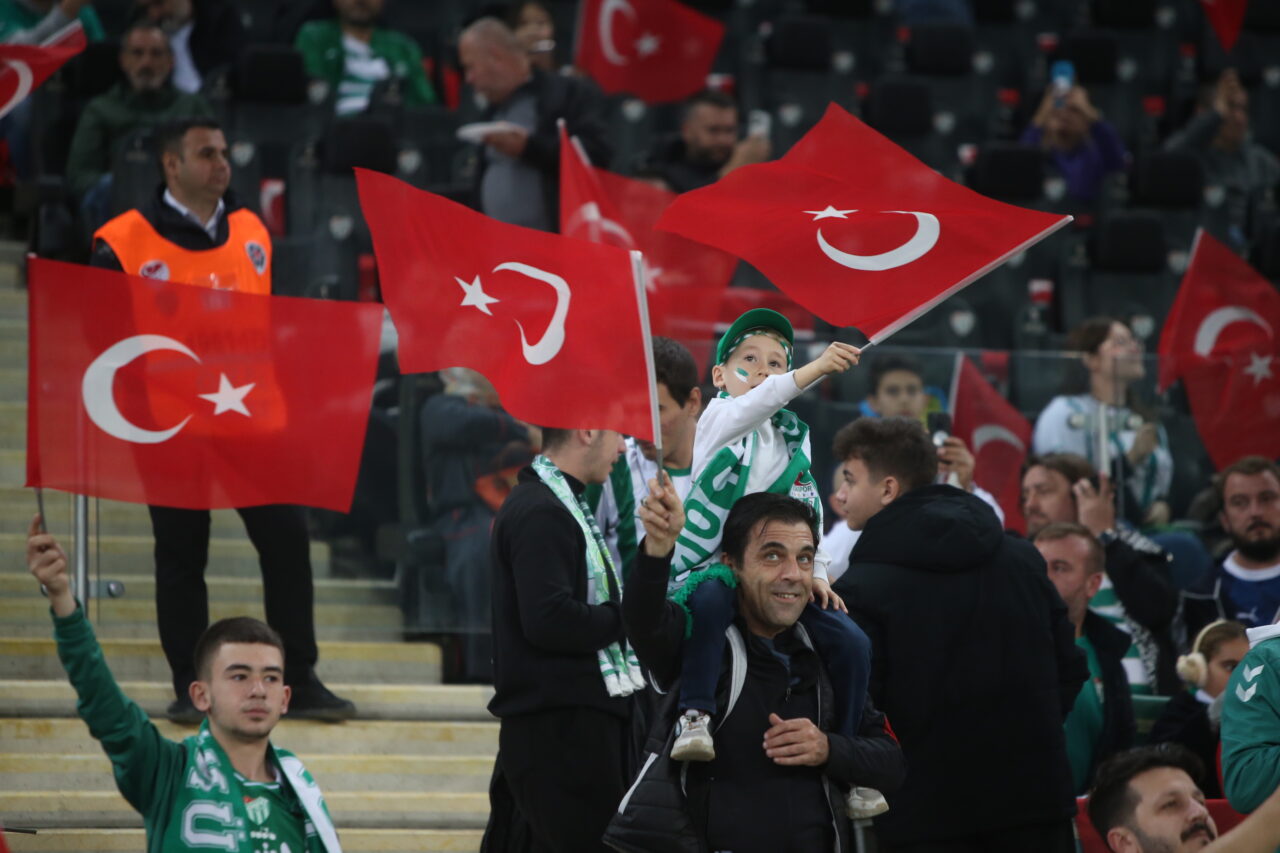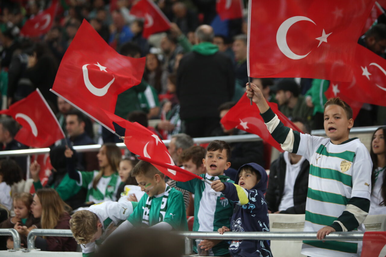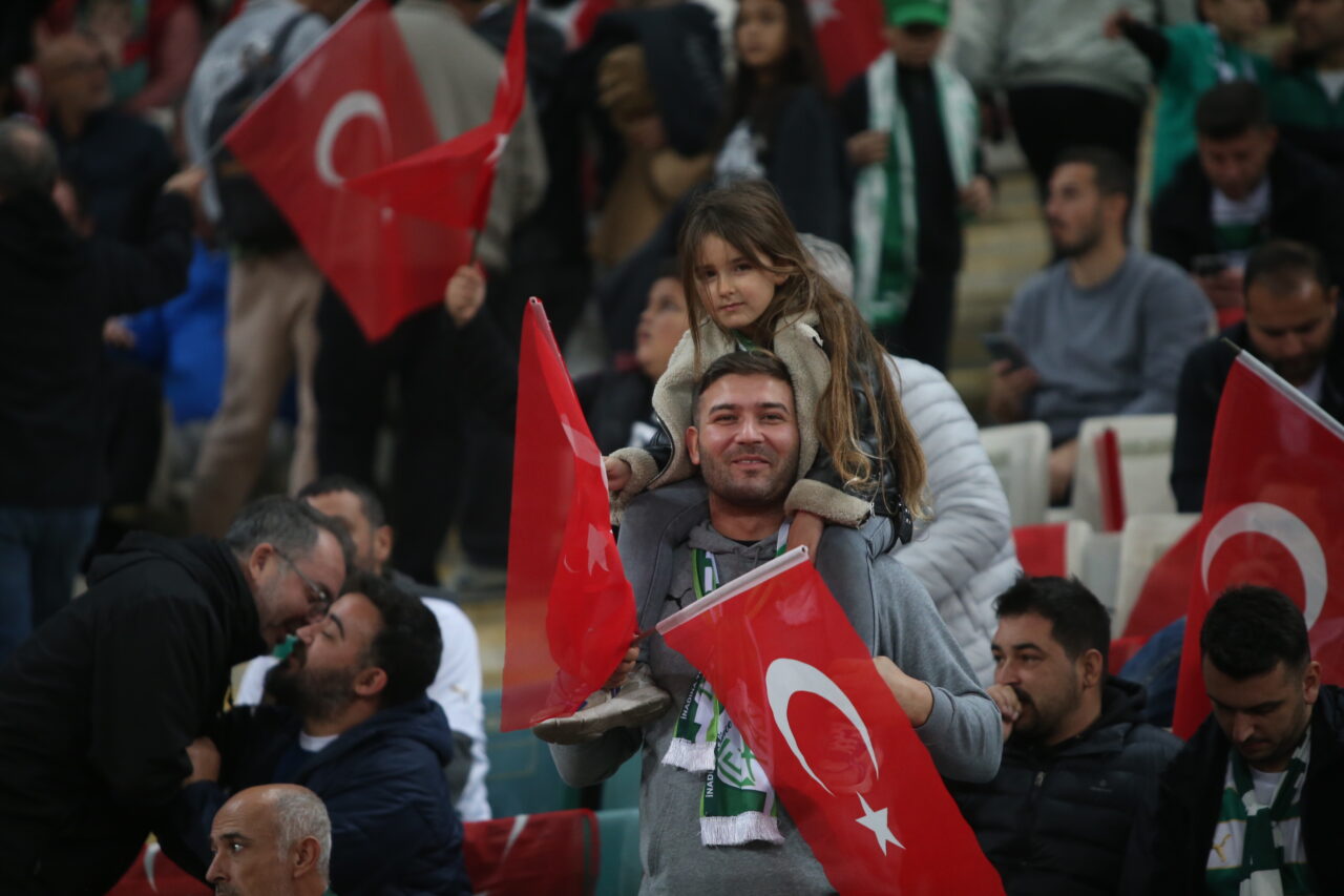 Nesine 3. Lig 1. Grup 8. hafta maçında Belediye Kütahyaspor’u konuk eden Bursaspor’da yeşil beyazlı taraftarlar yine geceye damga vurdu. Stadyumu dolduran 40 bini aşkın yeşil beyaz sevdalıları, takımlarına büyük destek verirken, yaptıkları koreografiyle yine adından söz ettirdi.