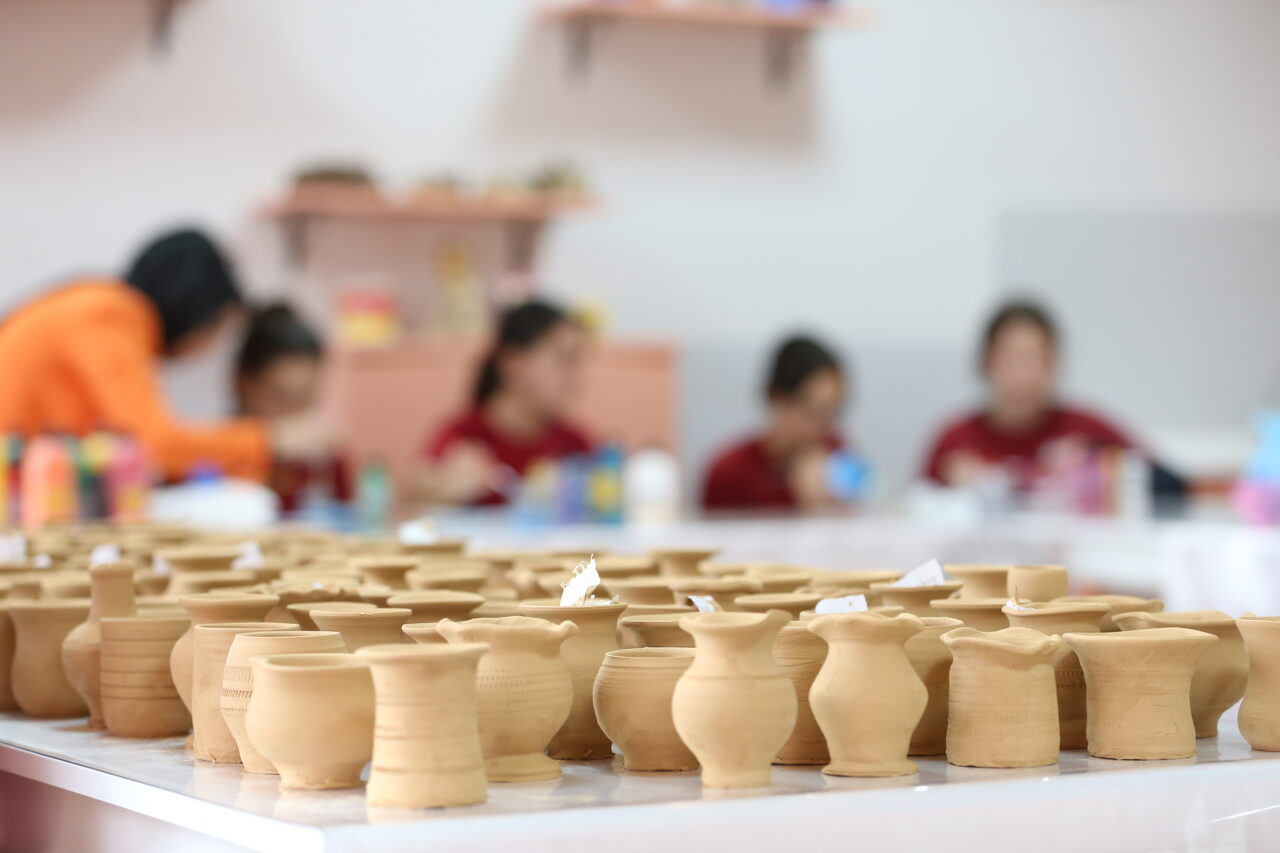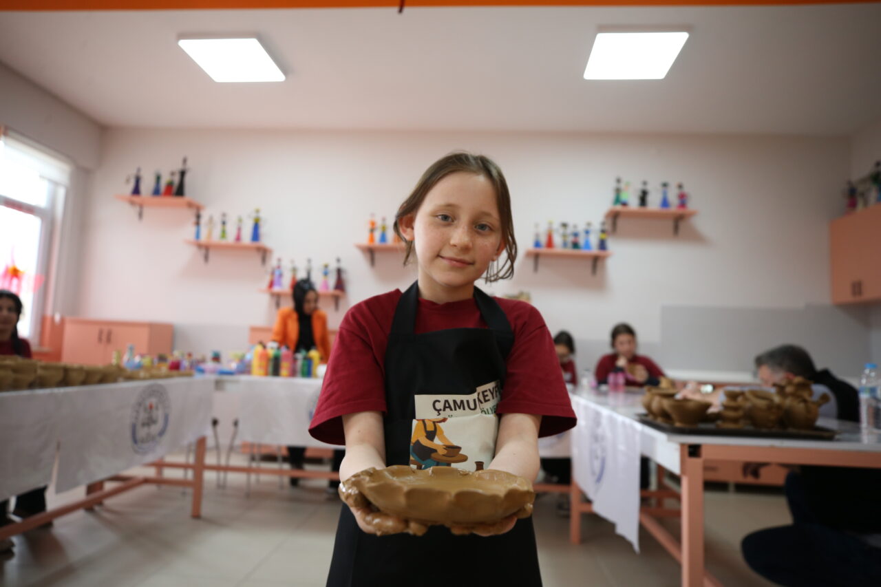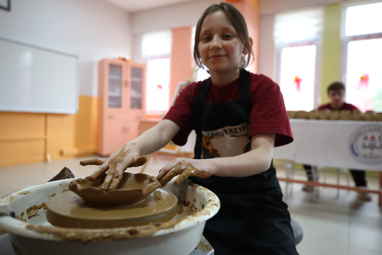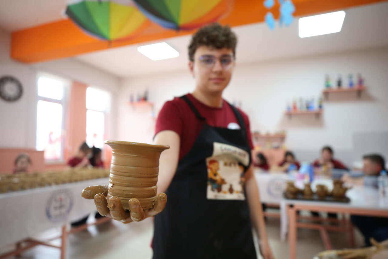 Proje kapsamında özellikle ortaokullarda kurulan atölyelerde öğrenciler haftanın bir günü çömlek yapımını öğreniyor.