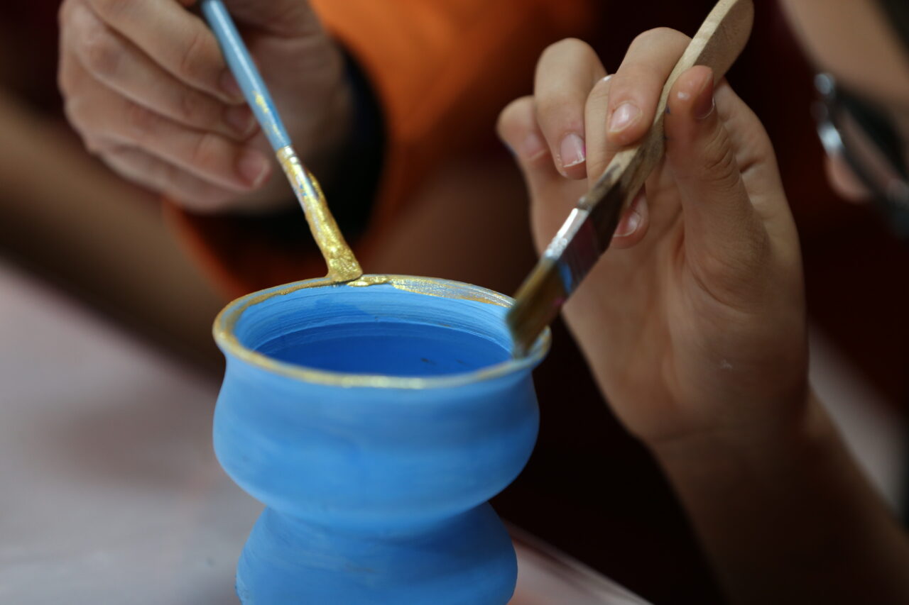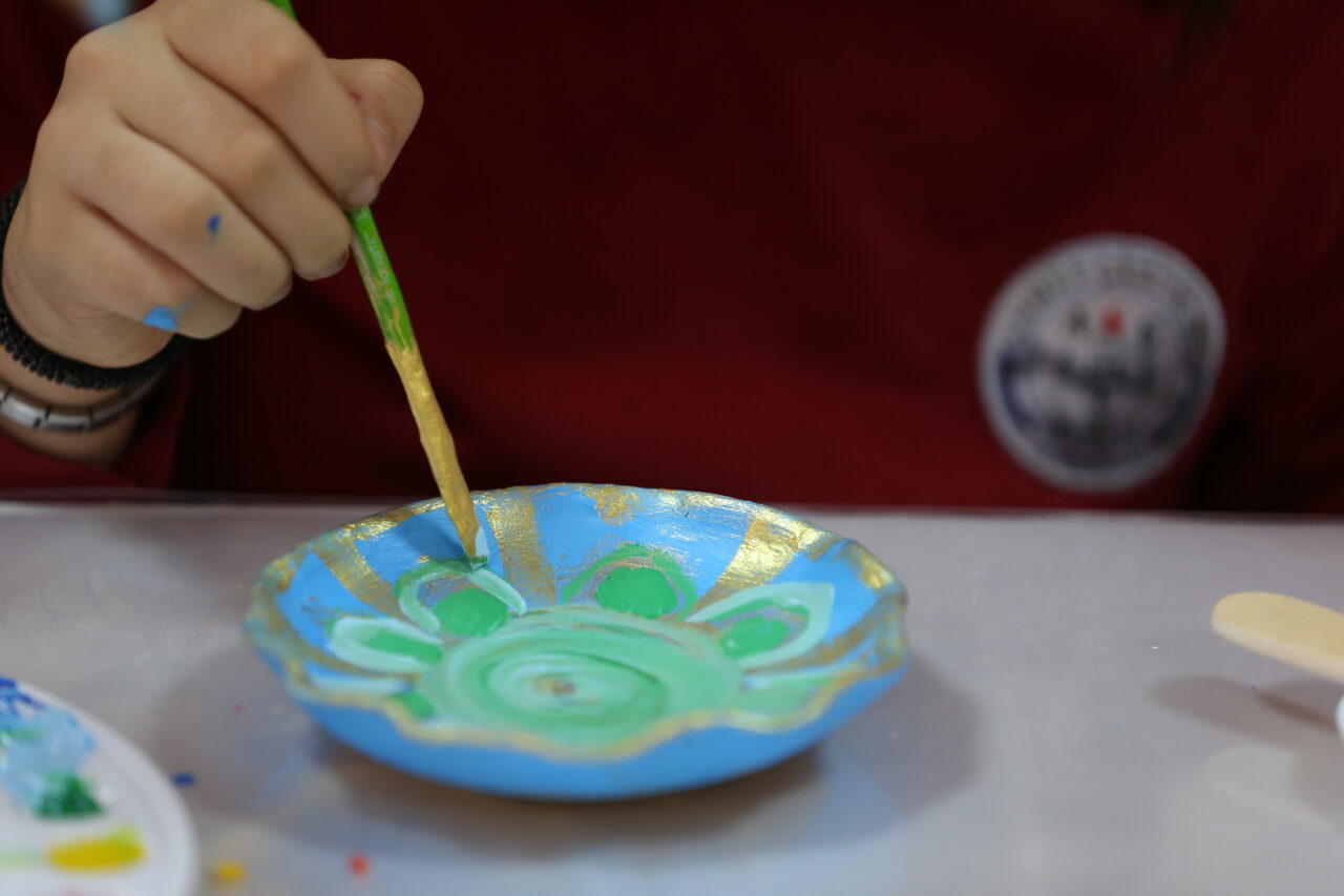 Şekil verildikten sonra kurutulan çömlekler, daha sonra öğrenciler tarafından boyanarak okullarında sergileniyor.