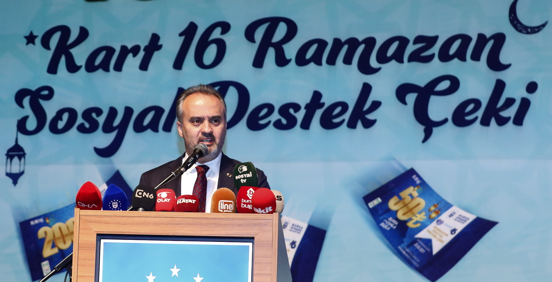Bursa Büyükşehir Belediye Başkanı Alinur Aktaş, Ramazan ayına özel devreye aldıkları Kart16 Ramazan Destek Çeki uygulamasını Atatürk Kongre ve Kültür Merkezi’nde düzenlediği basın toplantısı ile kamuoyuna duyurdu. Toplantıya Başkan Aktaş’ın yanı sıra Bursa Milletvekilleri Refik Özen ve Ahmet Kılıç, AK Parti İl Başkanı Davut Gürkan, BESOB Başkanvekili Fahrettin Tüccaroğlu, Bursa Bakkallar Odası Başkanı Muhammet Nuri Örs ve bakkal esnafı da katıldı.